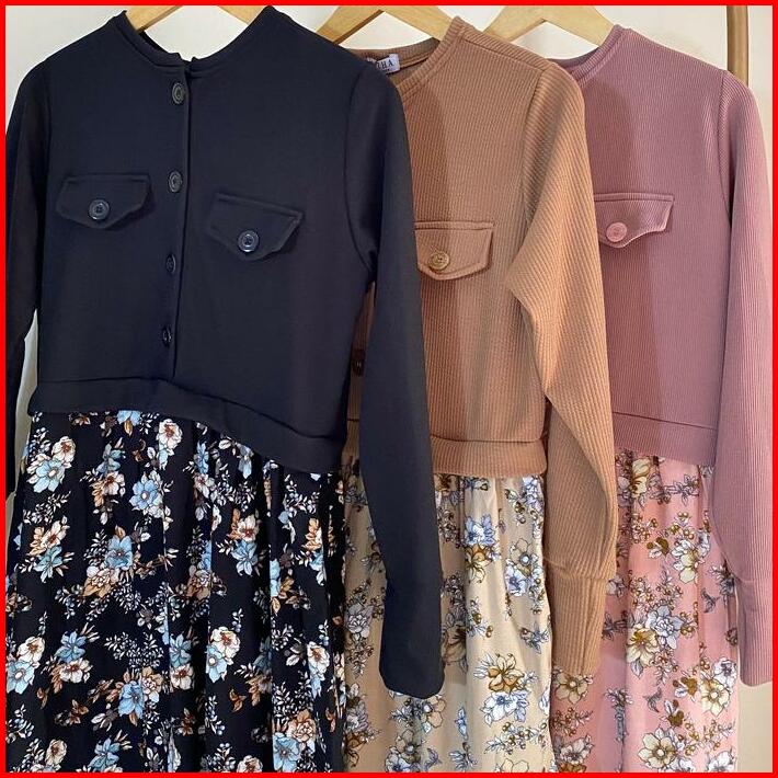 Gamis Haliza Knit Kombinasi Rayon Amor Premium Simple Nyaman Wanita