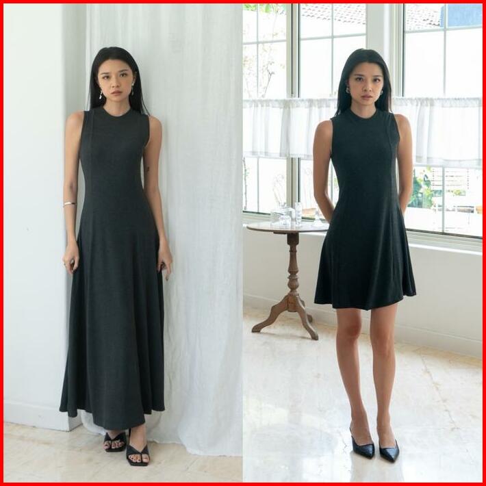Hera Dress Rooha Dress Panjang Dan Pendek Wanita Basic Dress Rib Ribbed Knit Terusan Maxi Mini Dress Long Dress