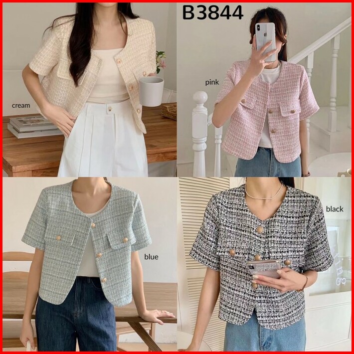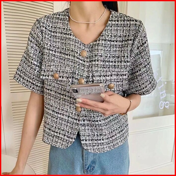 100 Import Kode B3844 Callie Short Sleeve Tweed Blazer