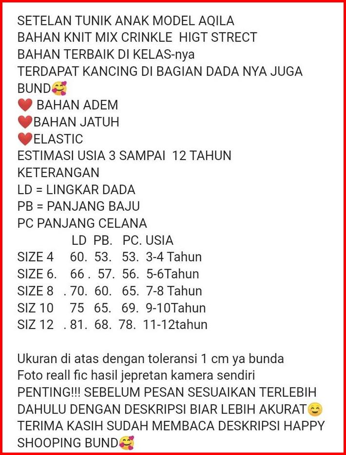 Setelan Anak Model Aqila 3-12 Tahun Bahan Crinkle Mix Knit Hornet Maxline