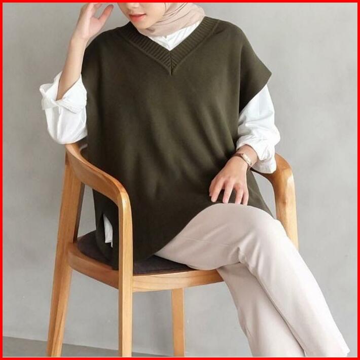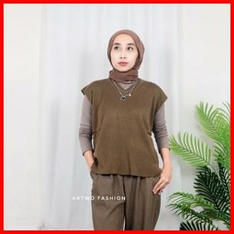 Artwo Mita Vest Knit Rompi Rajut Premium Tebal Halus Wanita Oversize Big Size Korean Style Kekinian