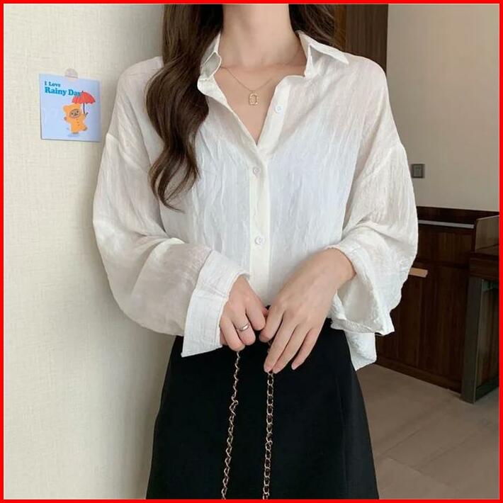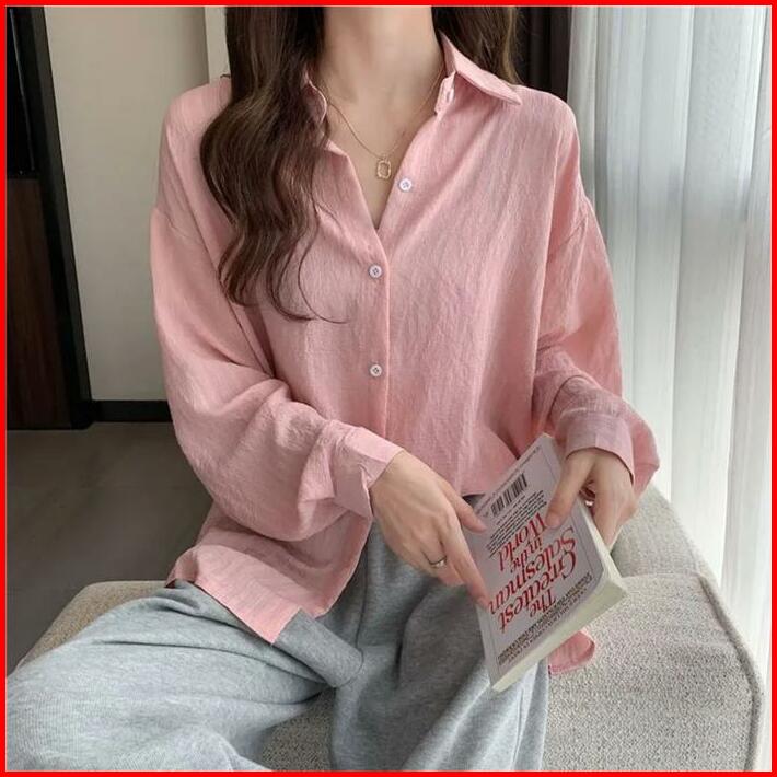 Kemeja Oversize Crinkel Wanita Korea Trending Termurah 2023 Crinkle Atasan Panjang