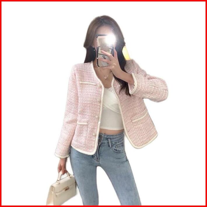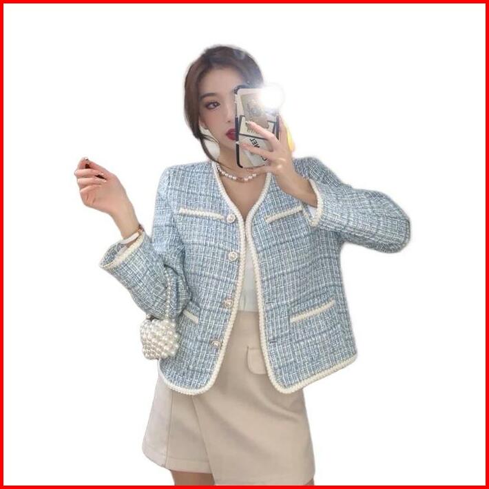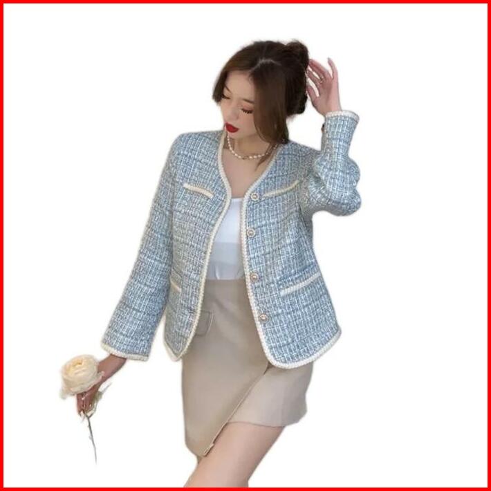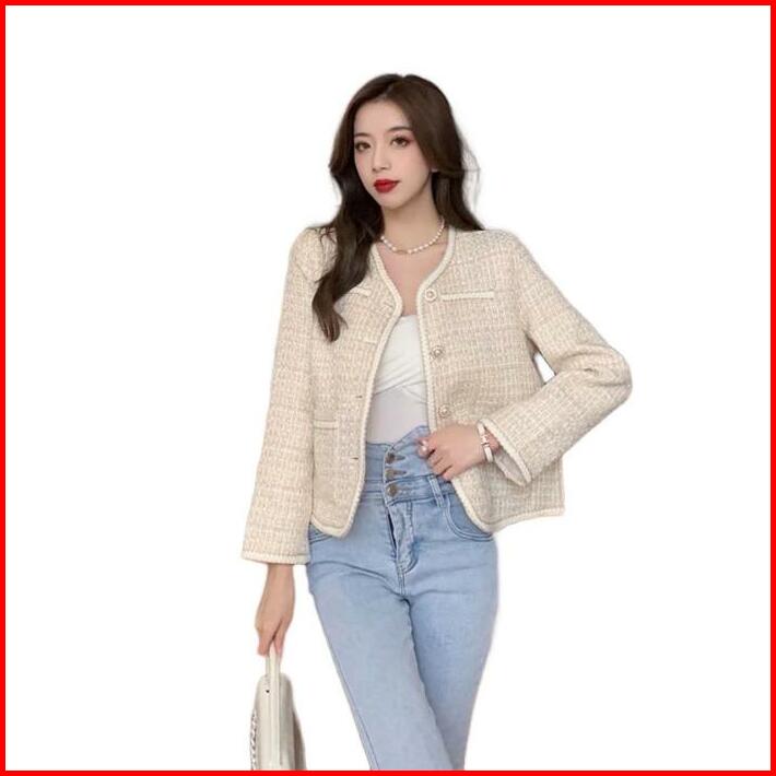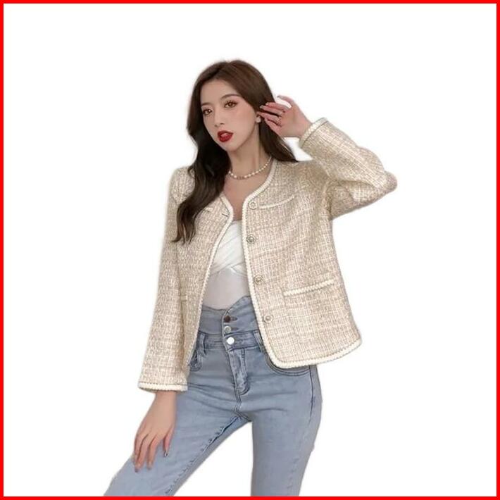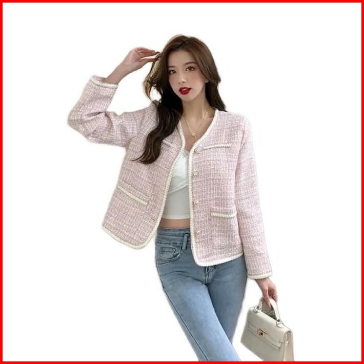 Bt3325 Blazer Jumbo L-4xl Korean Long Blazer Tweed Bigsize With Pearl Buttons