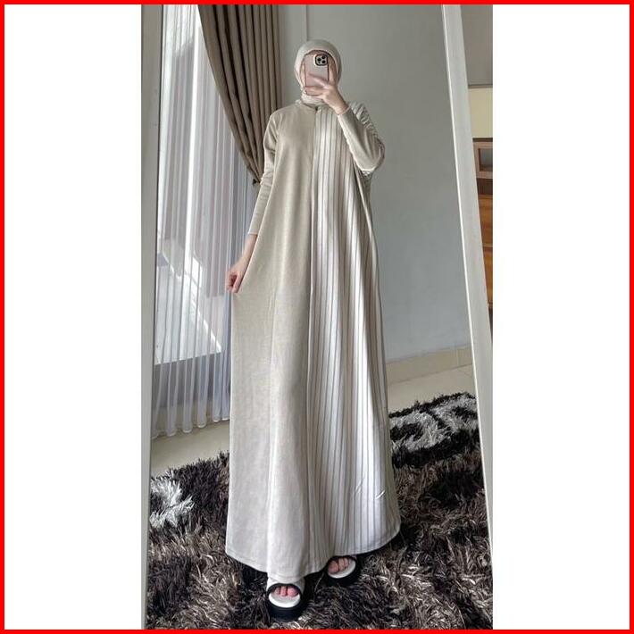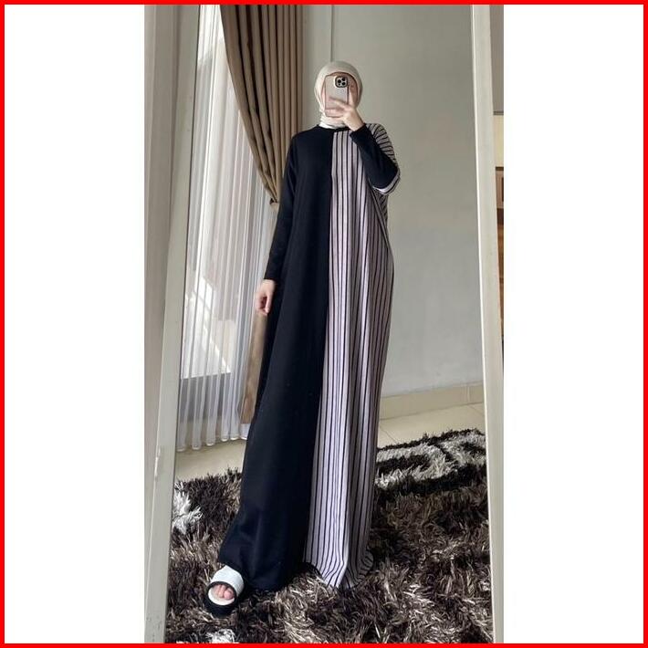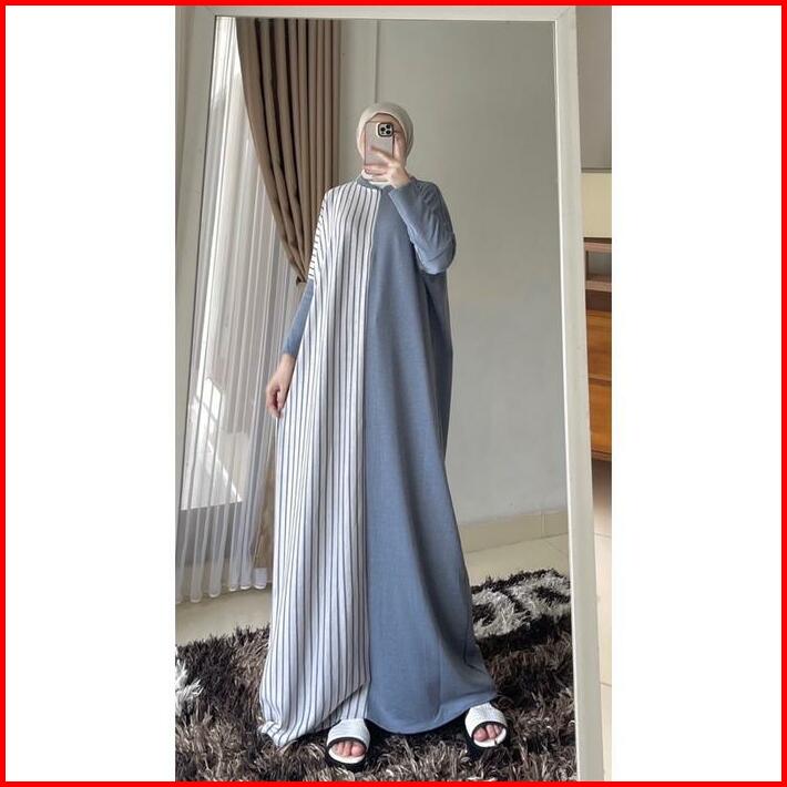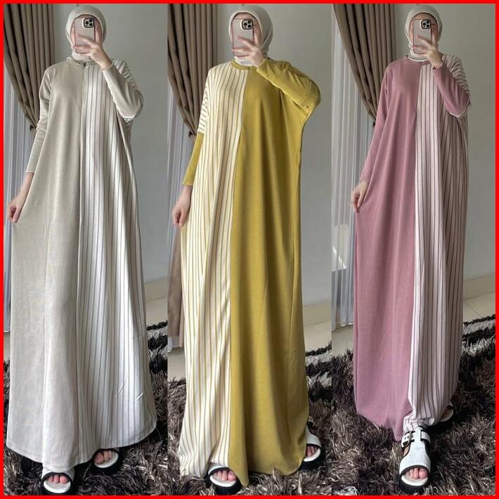 Jn- Jemma Gamis Batwing Knit Two Tone Busui Frendly Dress Tebal Jumbo Muslim Wanita Syari Variasi Panjang Kerja Kancing