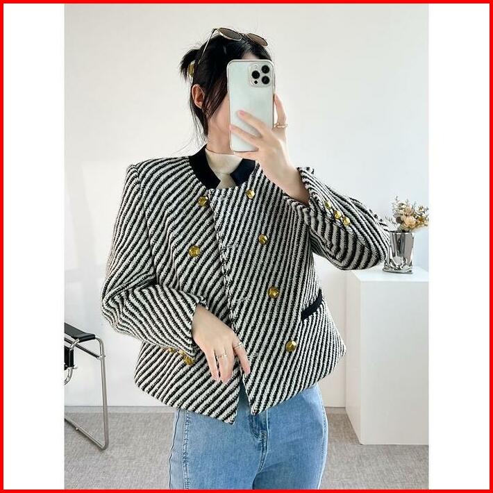 Big Size Coat Loose Fashion Tweed Striped Blazer S-xl