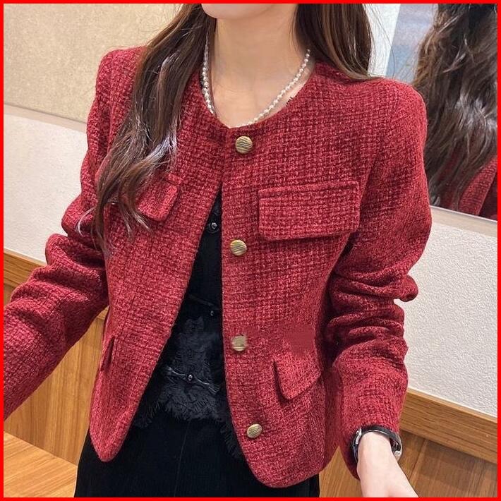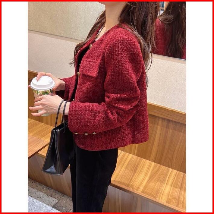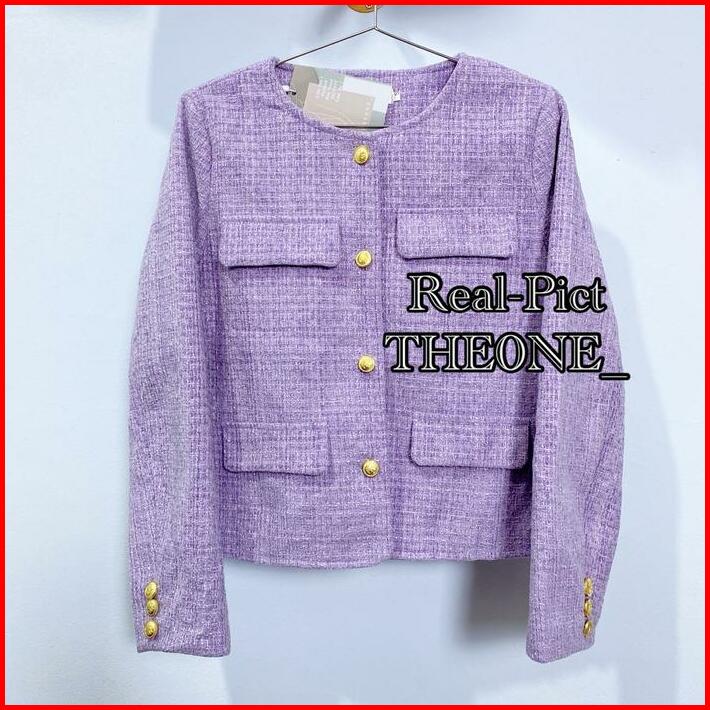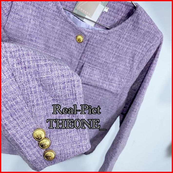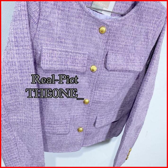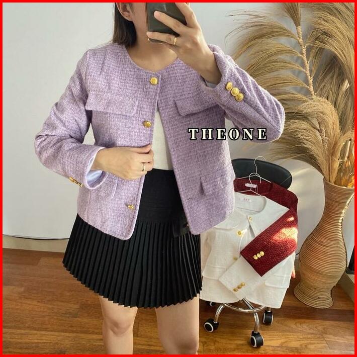 The0ne Korean Style Bigsize Blazer Tweed Maroon Lilac White Round Neck Single-breasteds Long Sleeved Outerwear Top Tweed
