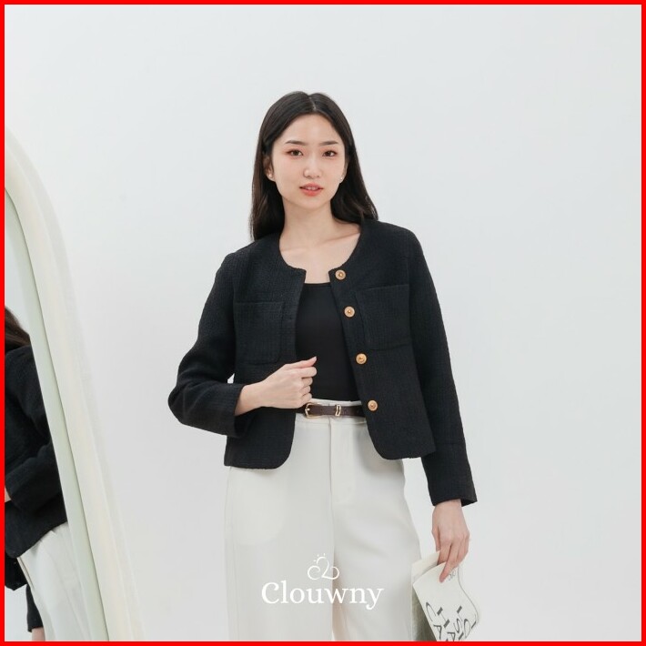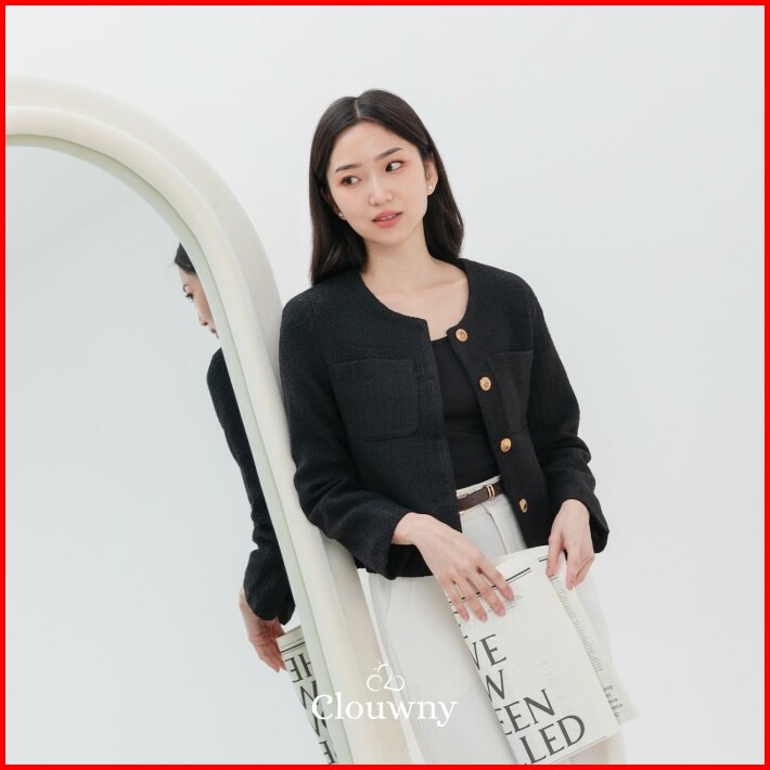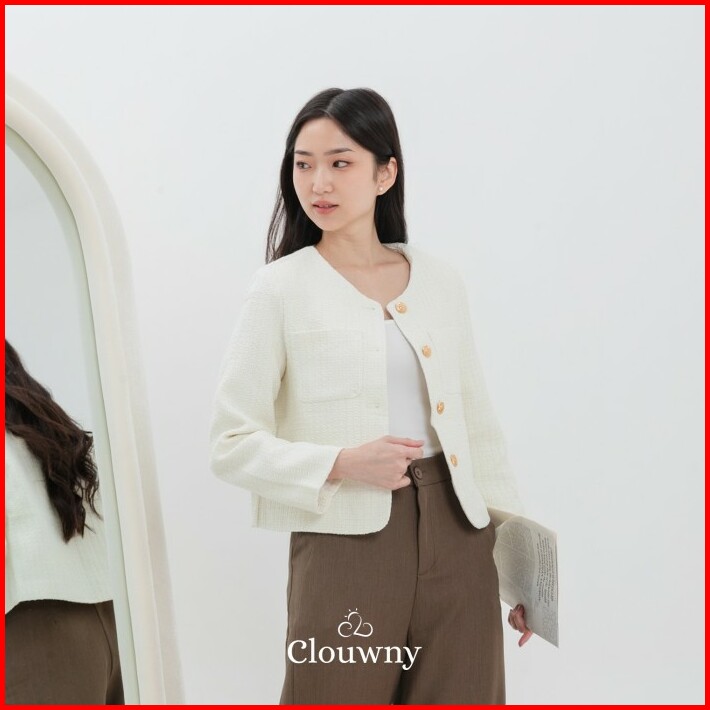 Clouwny Davia Tweed Blazer Wanita Formal Blazer Casual L Xxl