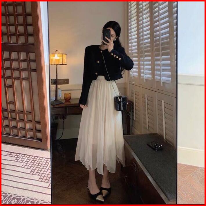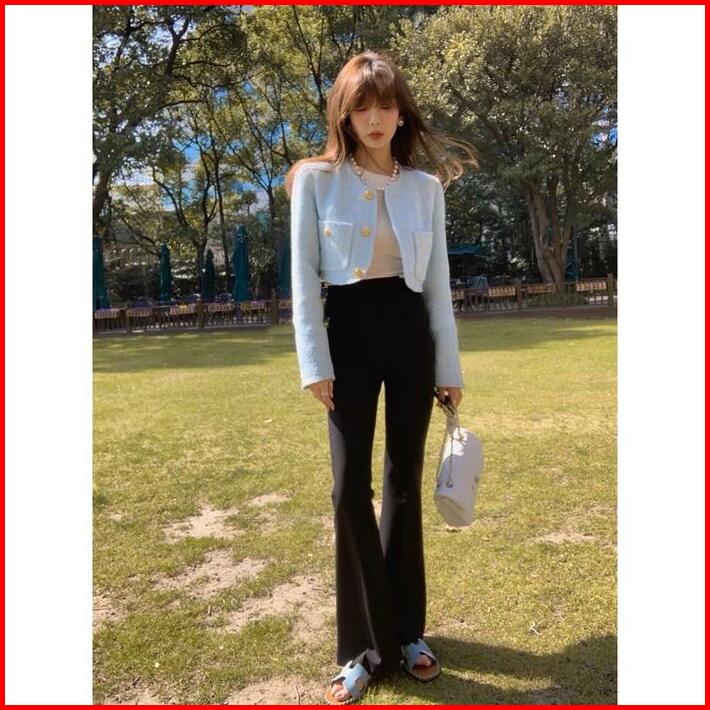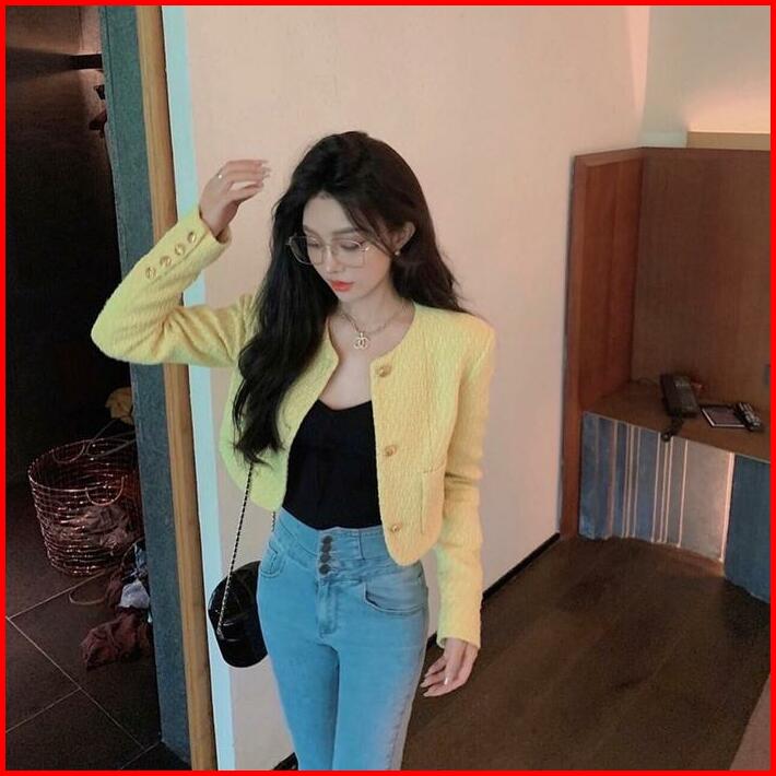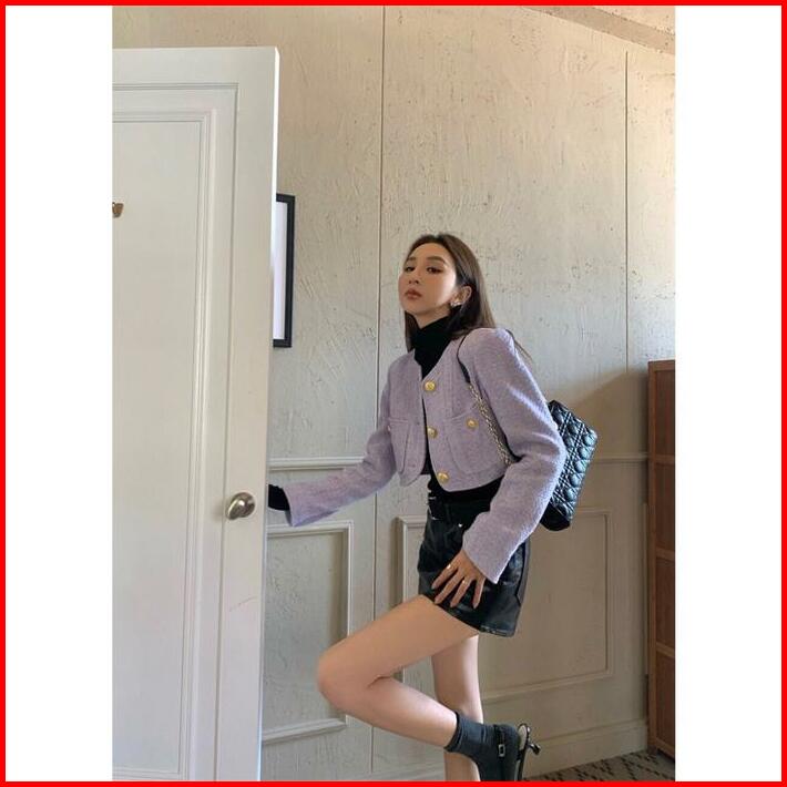 B3794 Olivia Buttons Crop Tweed Blazer