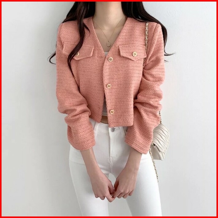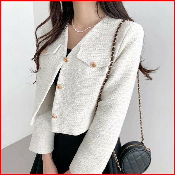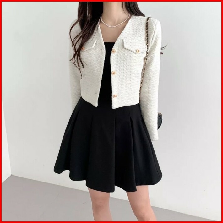 Minji Premium Tweed Blazer Gaya Korea Putih Hitam Outer Korean Style