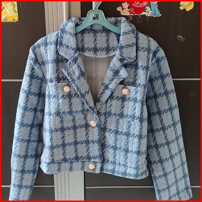 Preloved Blazer Jaket Tweed Biru Tangan Panjang Size M L Bahan Tebal