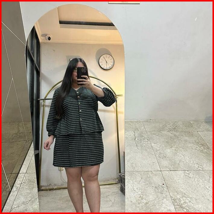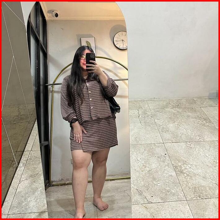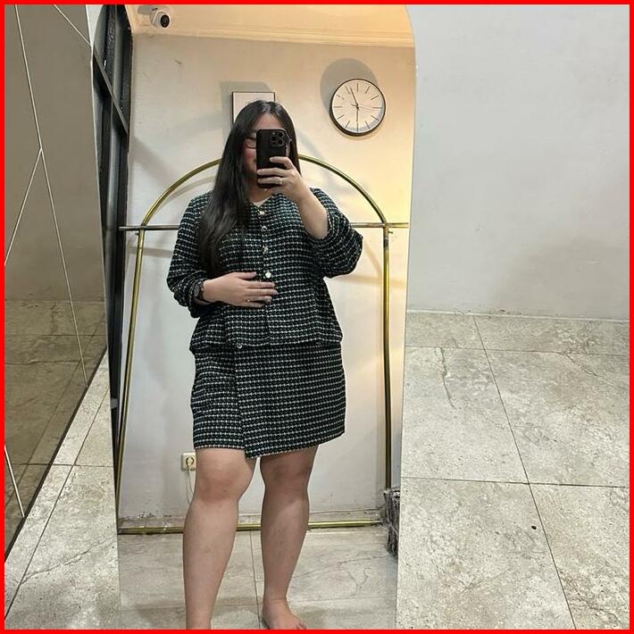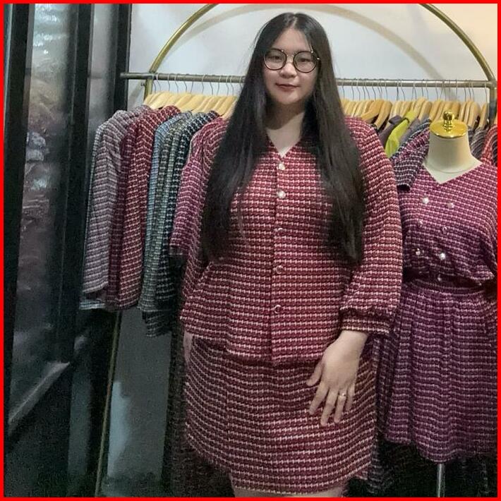 -ready Yoo Bi Setelan Lengan Panjang Longsleeve Dan Skort Rok Celana Jumbo Tweed Knit