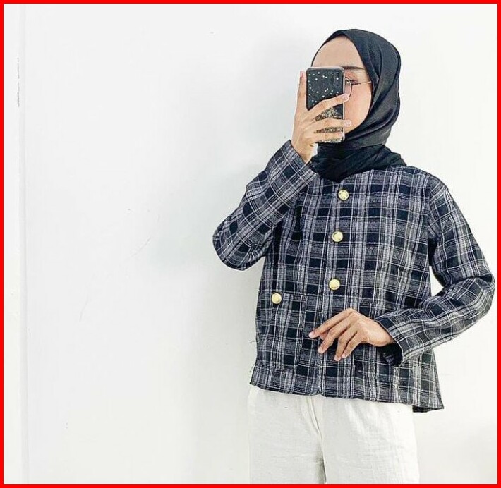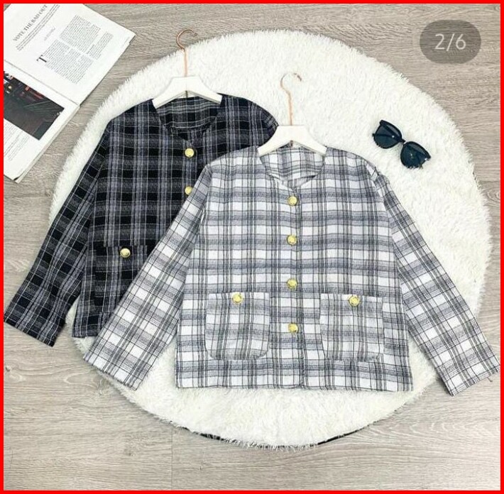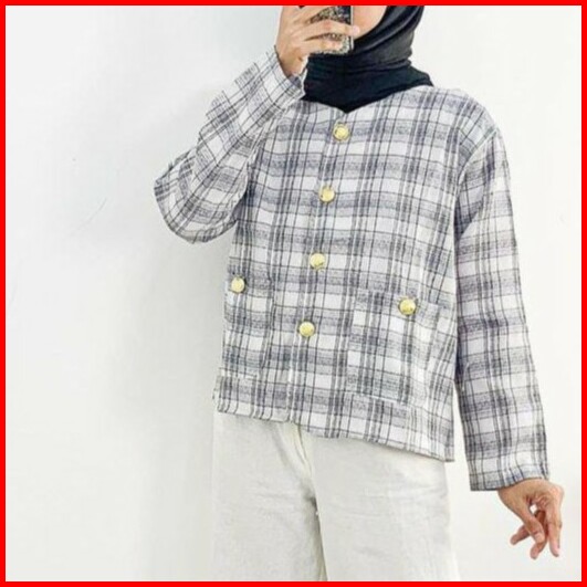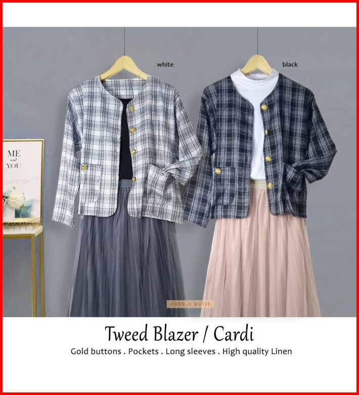 Premium Linen Tweed Blazer Cardigan Outer Vintage Kotak Xl Outfit Kantor