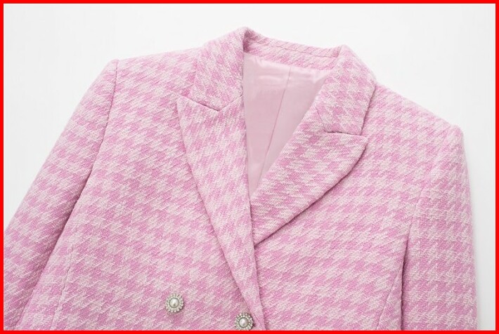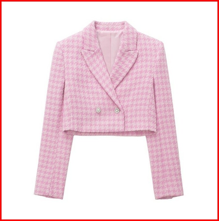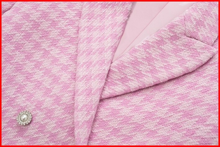 Blazer Kantor Formil Casual Tweed Pink Plaid 004441