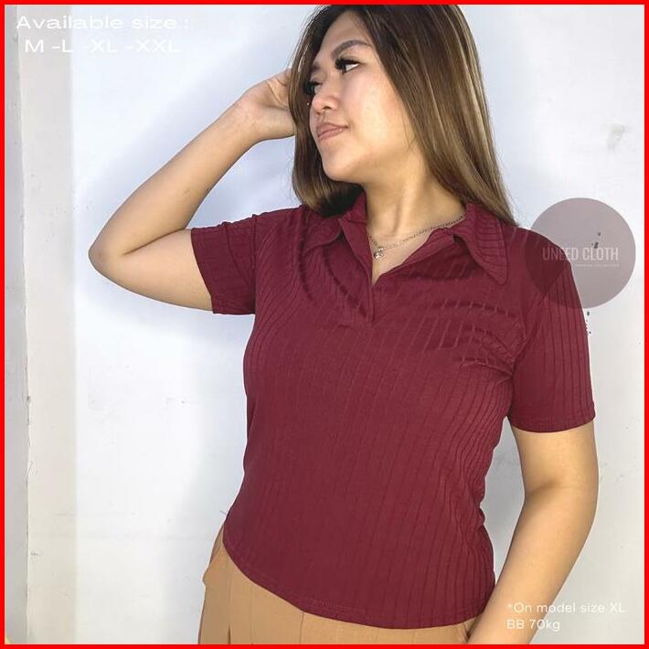 Uneed Cloth Top Polo Wanita Kaos Kerah Atasan Kerah Jumbo Polo Knit Top Kaos Polo Olla Panjang Polos