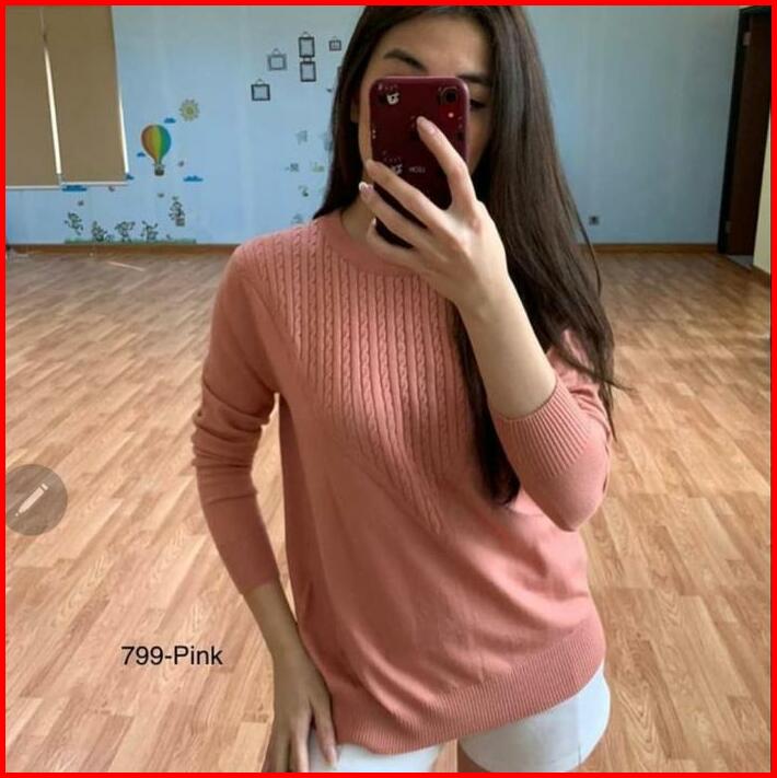 799 Knit Top Atasan Baju Rajut Katun Adem Sweater Wanita Tangan Panjang Hijab Friendly Knitwear Santai Crew Neck Slim-fi