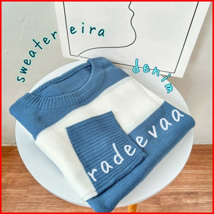 Sweater Eira Stripe Knit Oversize Atasan Rajut Motif Garis Tebal