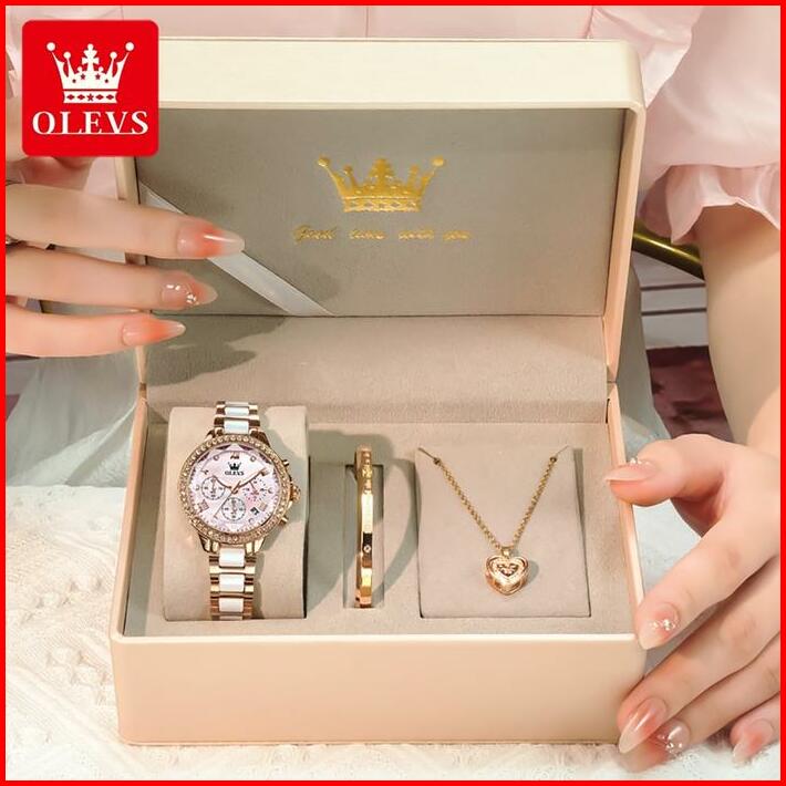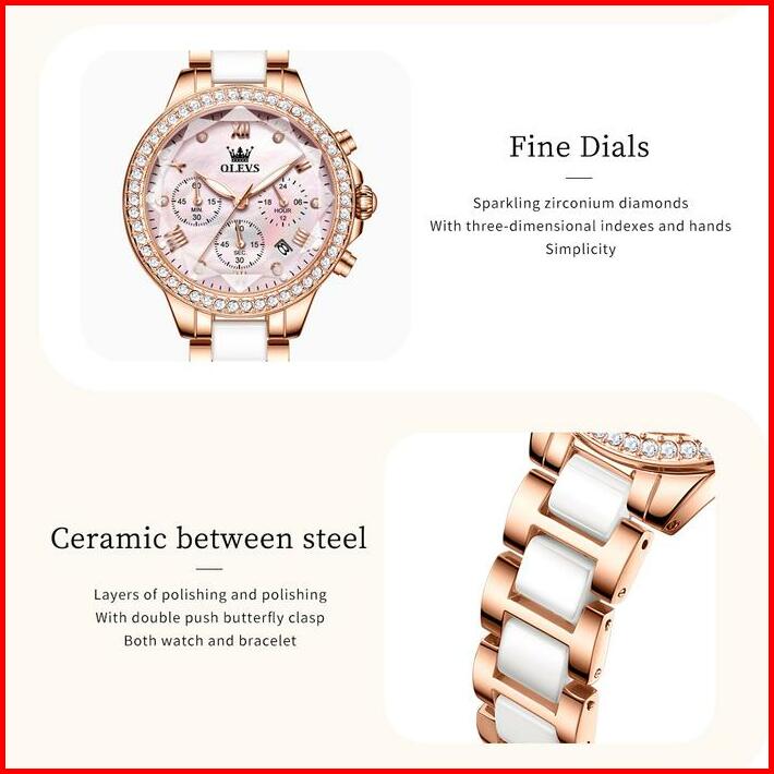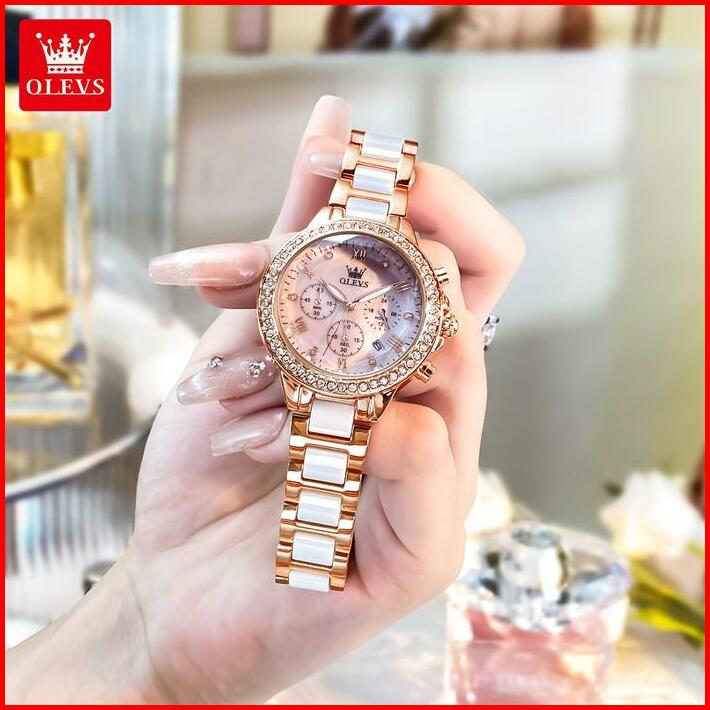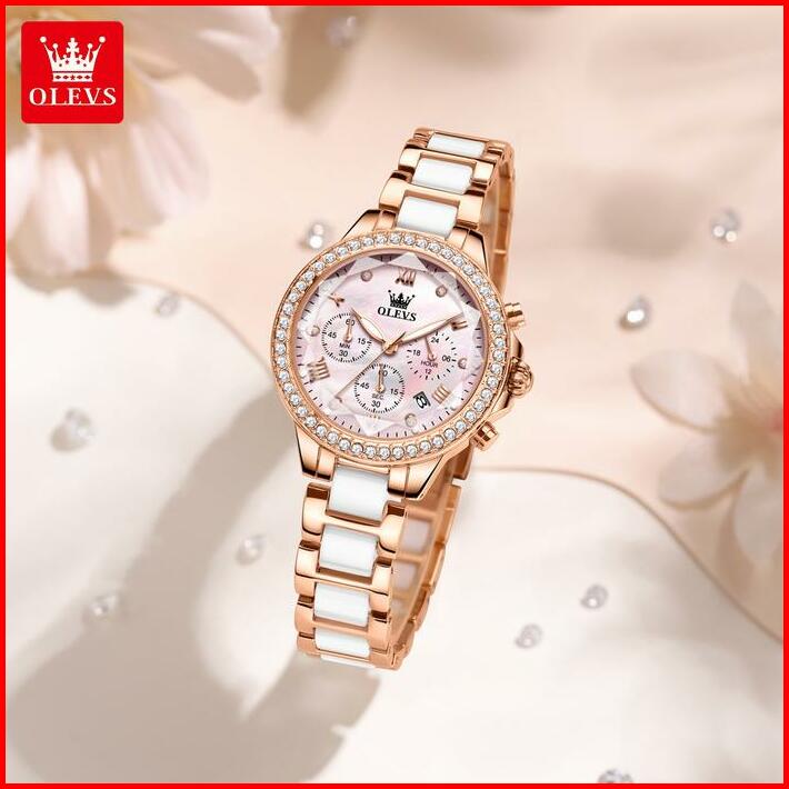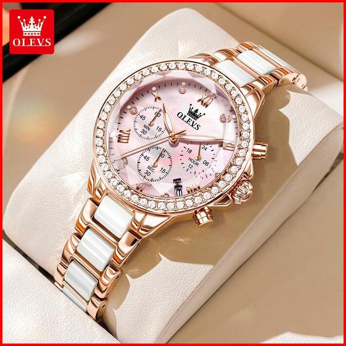 Olevs Jam Tangan Wanita Original Elegan Anti Air Tahan 2025 Fashion Terbaru Keramik Women Watches Arloji Kaca With Kotak