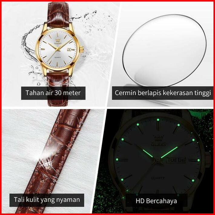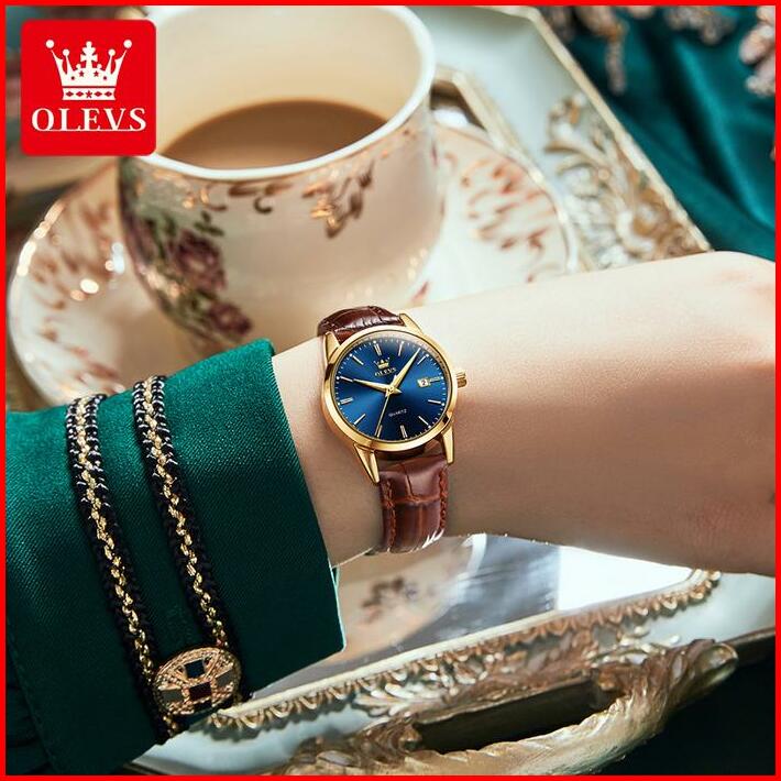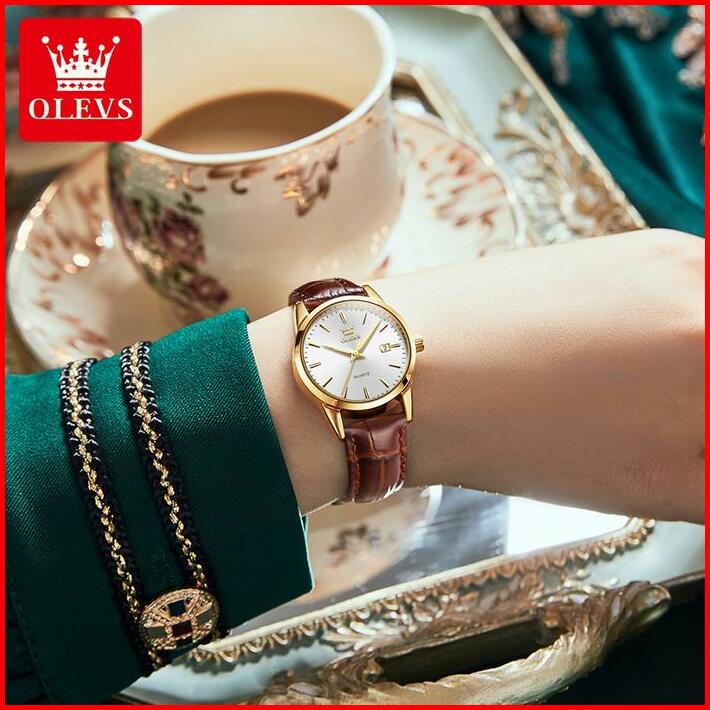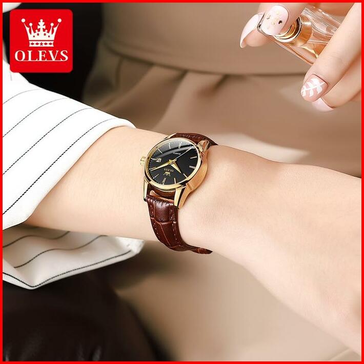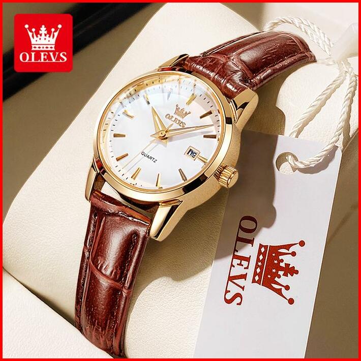 Olevs Jam Tangan Wanita Anti Air Original Tali Kulit Cewek Bergaya Elegan Kecil Analog Women Watch