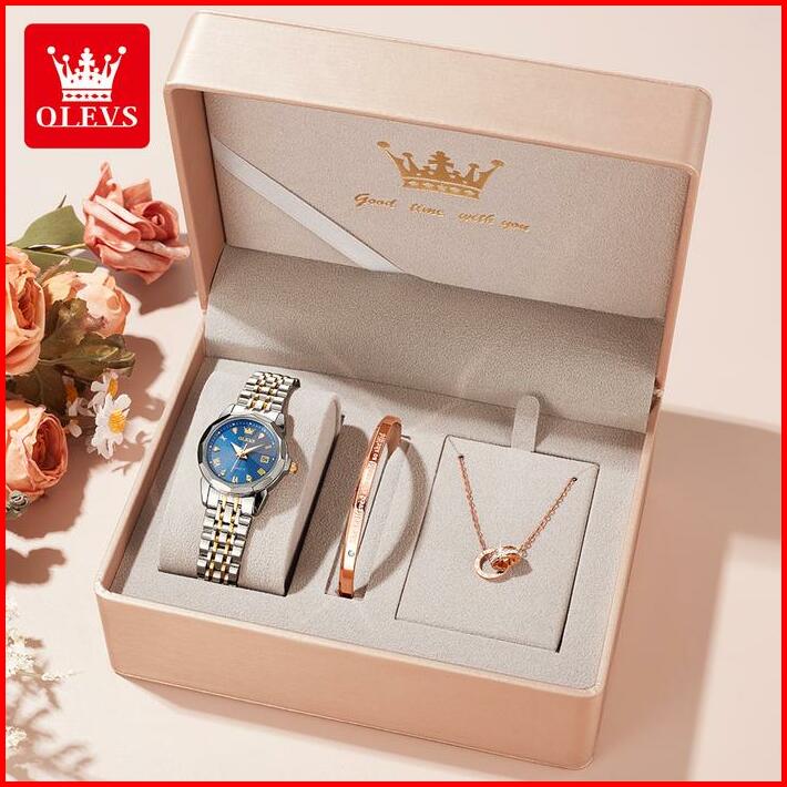 Olevs Jam Tangan Wanita Anti Air Terbaru 2025 New Anak Perempuan Set Kalung Gelang Cewek Kecil Rantai Original Korea Cas