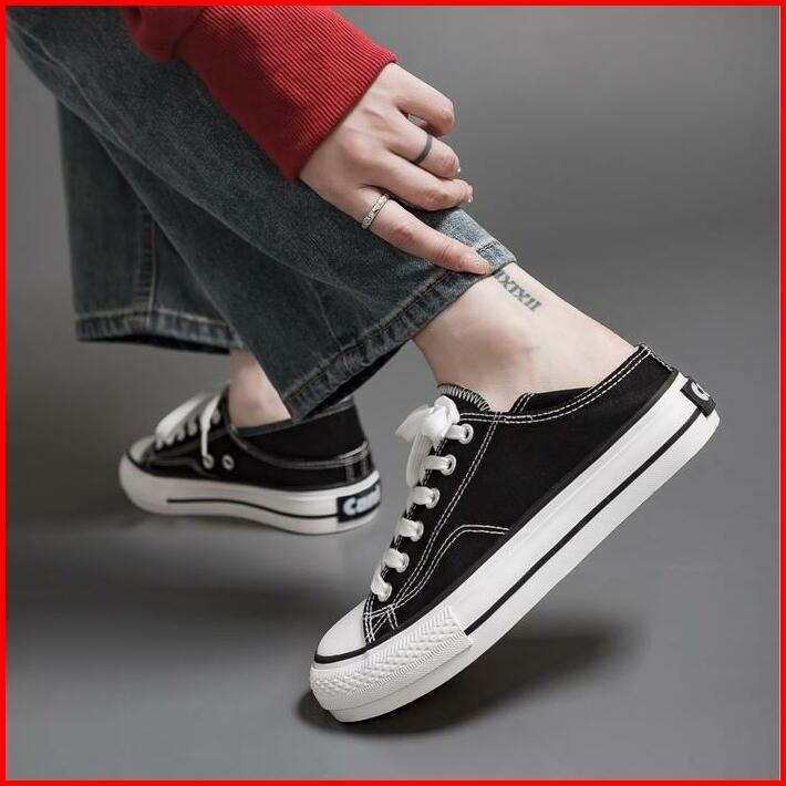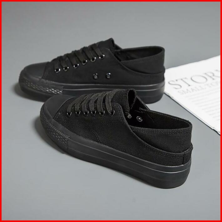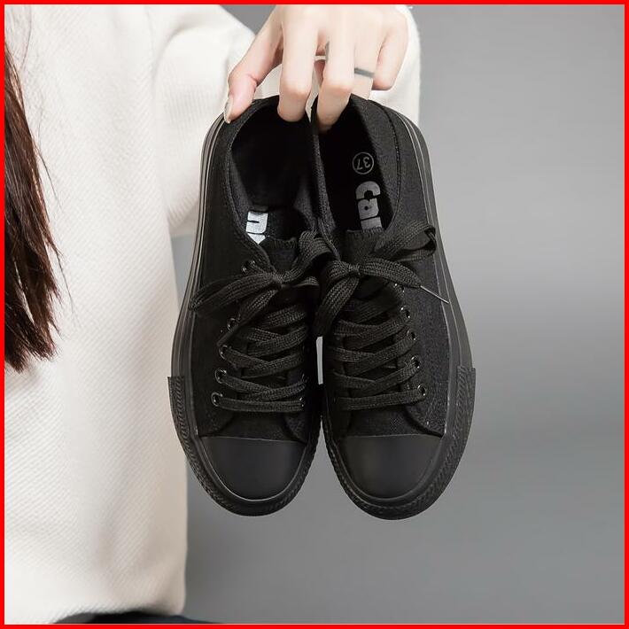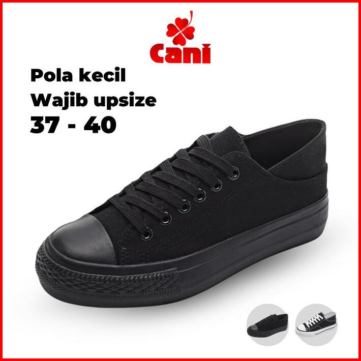 Cani Clasic Sepatu Sekolah Hitam Polos Canvas Slip-on Ease 2 In 1 K9097