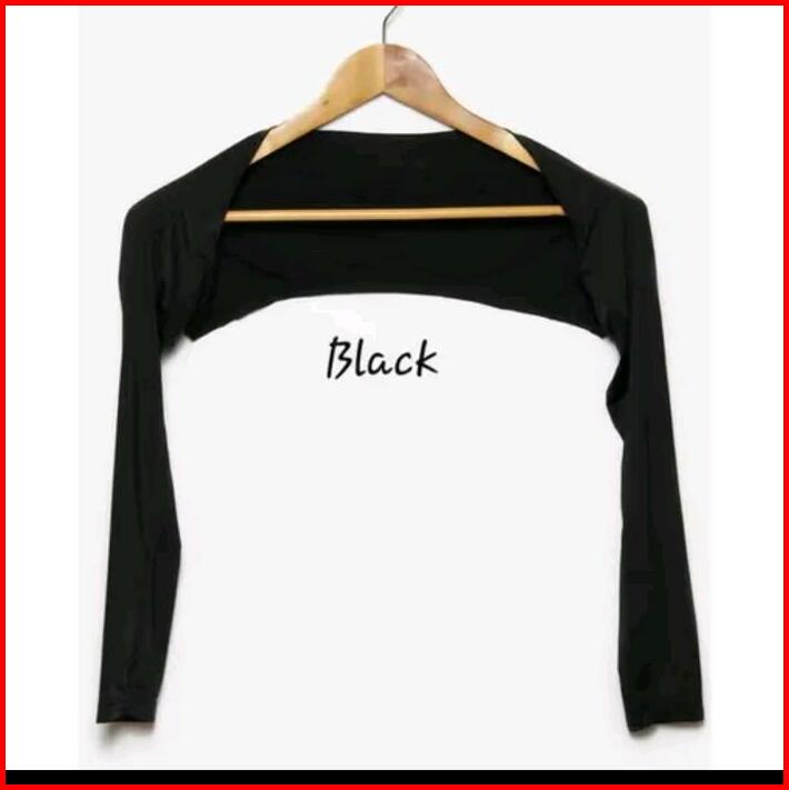 Manset Inner Bolero Spandek Jersey Crop Panjang Wanita Polos Hitam Atasan