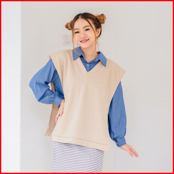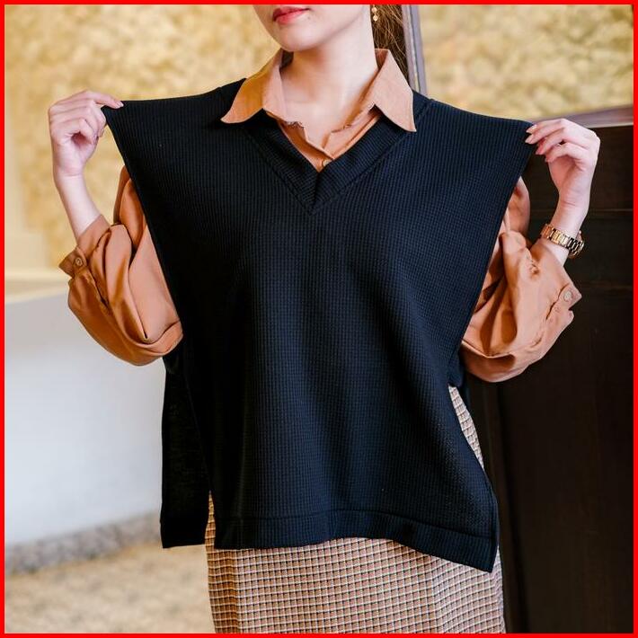 Yoenik X Michelecaren Shinyu Vest Outer Outer Apron Wanita Atasan Vest Knit