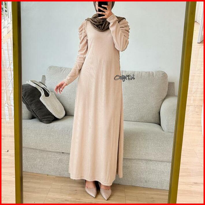 Sofya Puffy Knit Long Dress Lengan Puffy