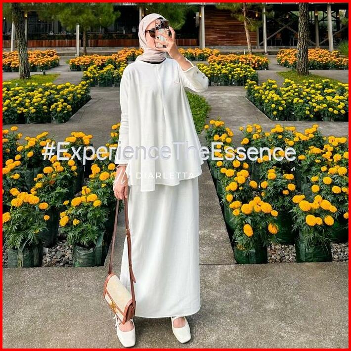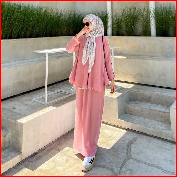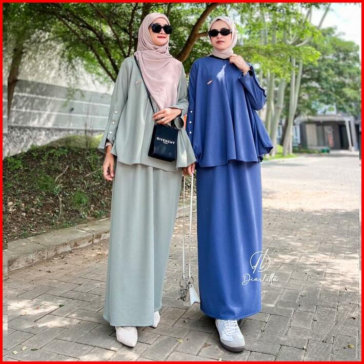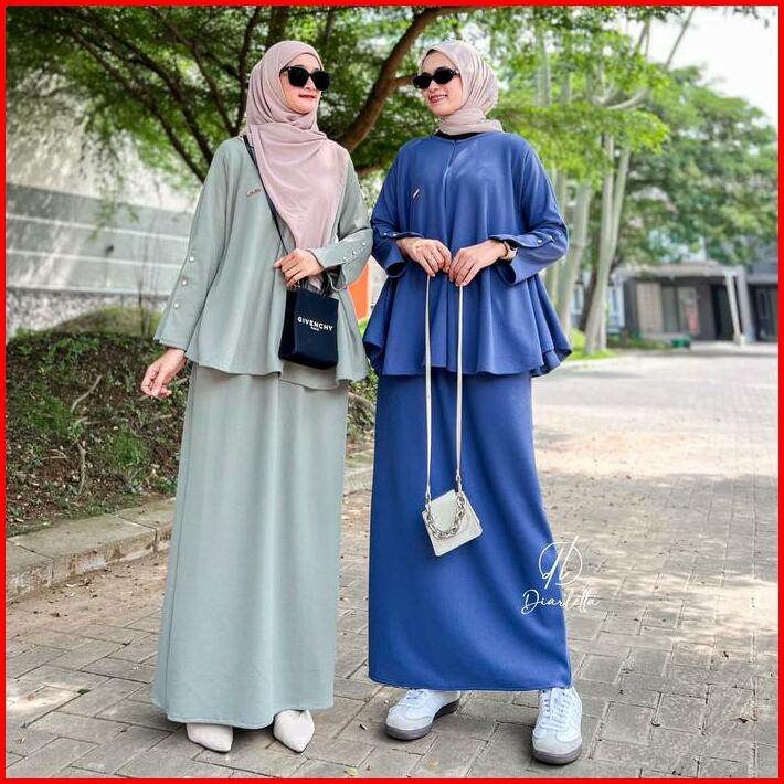 Clareeta Set Rok Top Peplum Knit Waffle Lengan Variasi Kancing Busui Friendly Wudhu Friendly By Diarletta