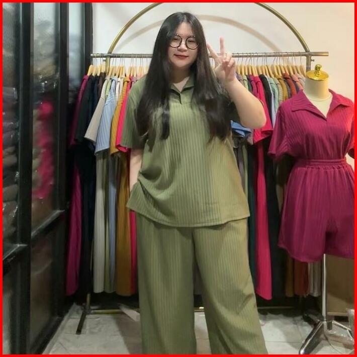 -ready Soo Min One Set Polo Shirt Celana Panjang Hornet Knit