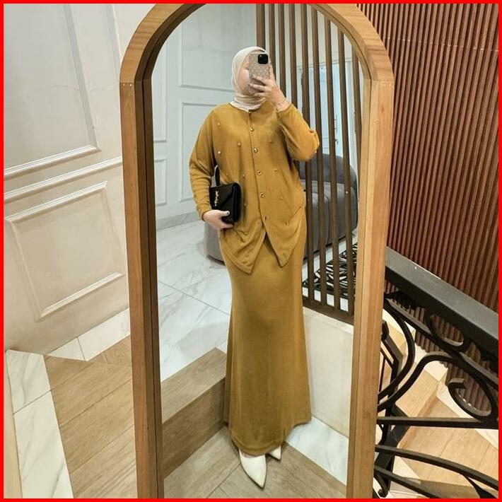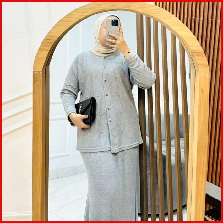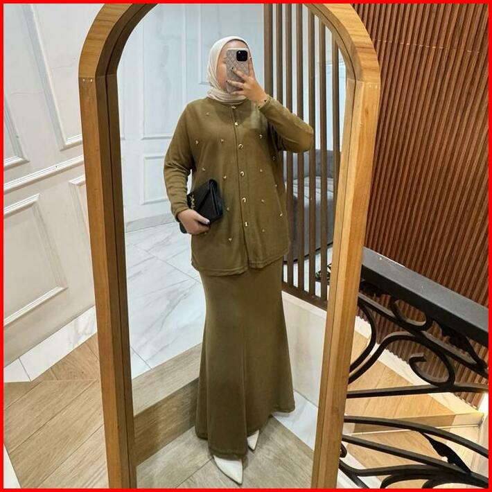 Naura Raya Set Knit Rib Elegant Baju Lebaran 2025 Blazer Rok Duyung Couple Ibu Dan Anak