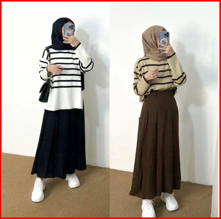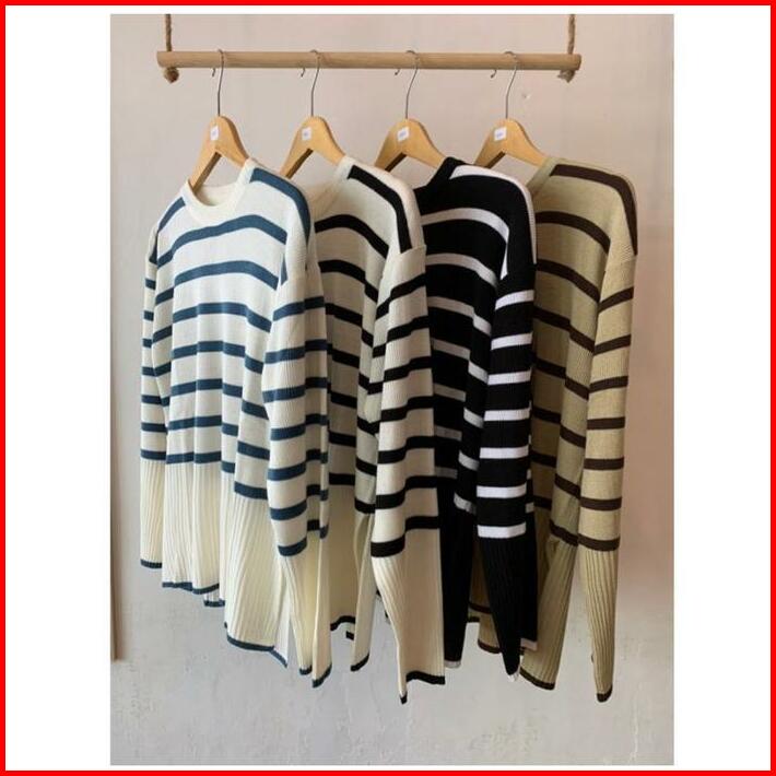 Haru Stripe Oversize Sweater Knit Atasan Rajut Tkn Ntr Knitwear Panjang