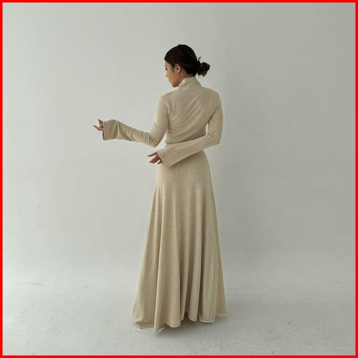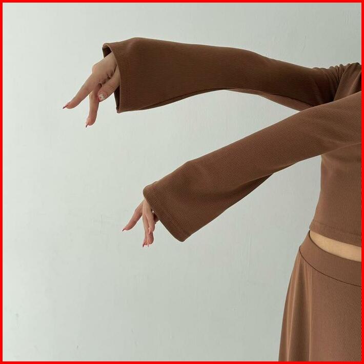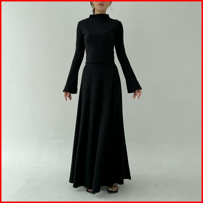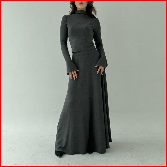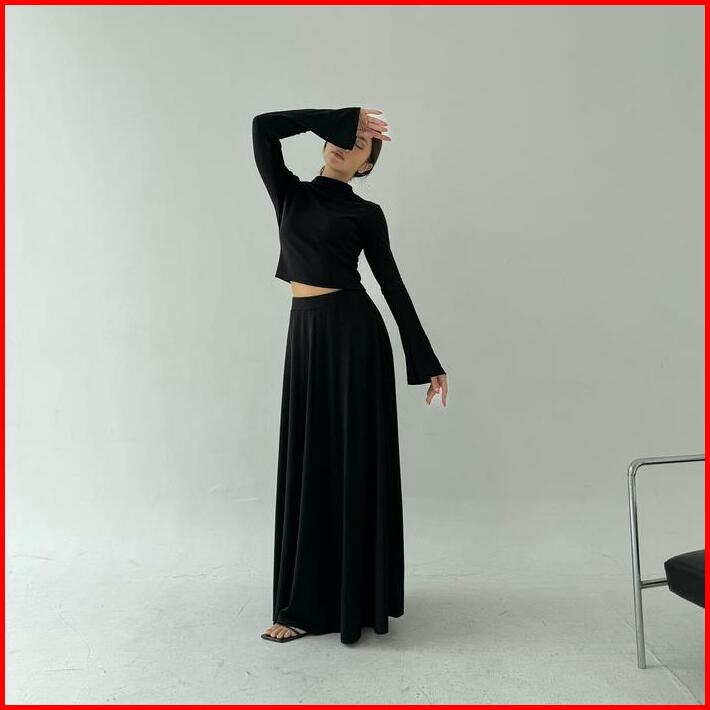 Sagittarius Set Setelan Wanita Long Sleeve Rok Panjang Ribbed Knit Set Crop Top Maxi Skirt Korean Long Skirt Long Sleeve