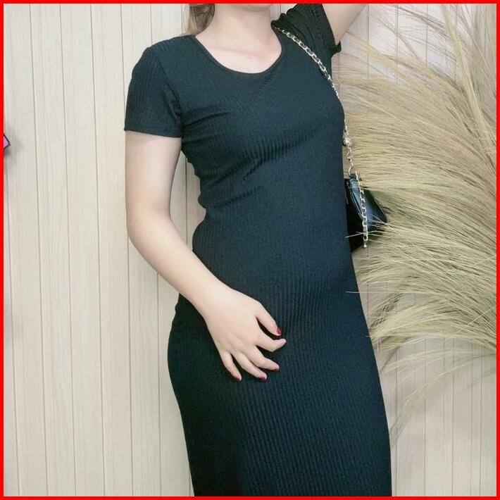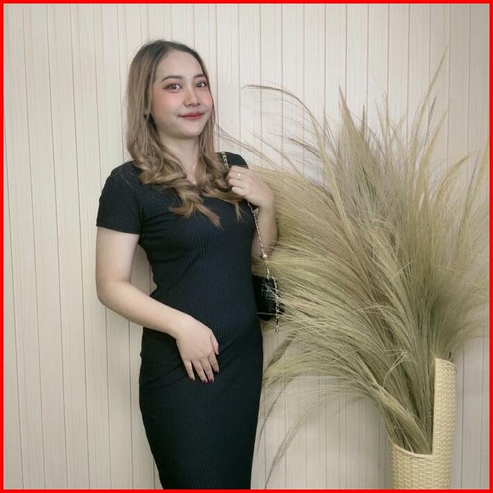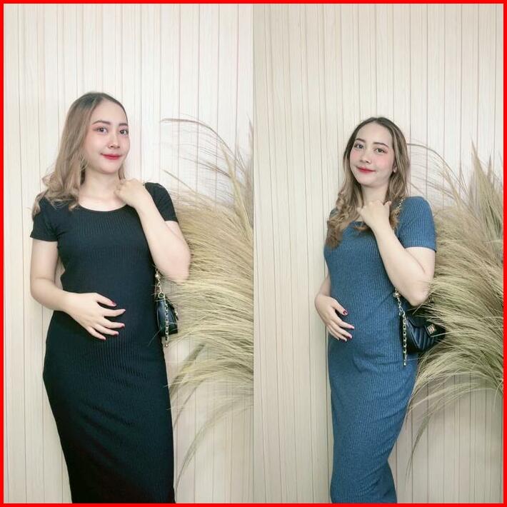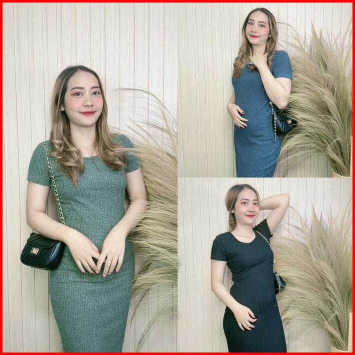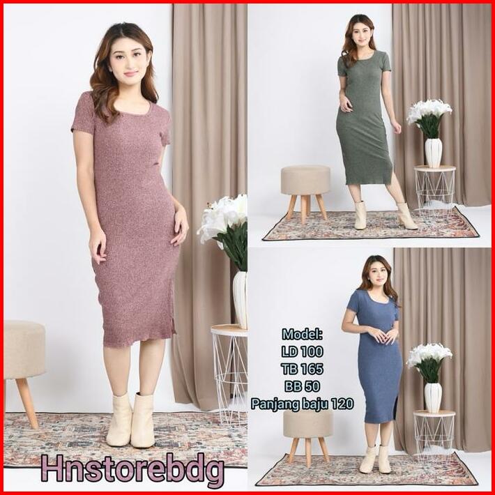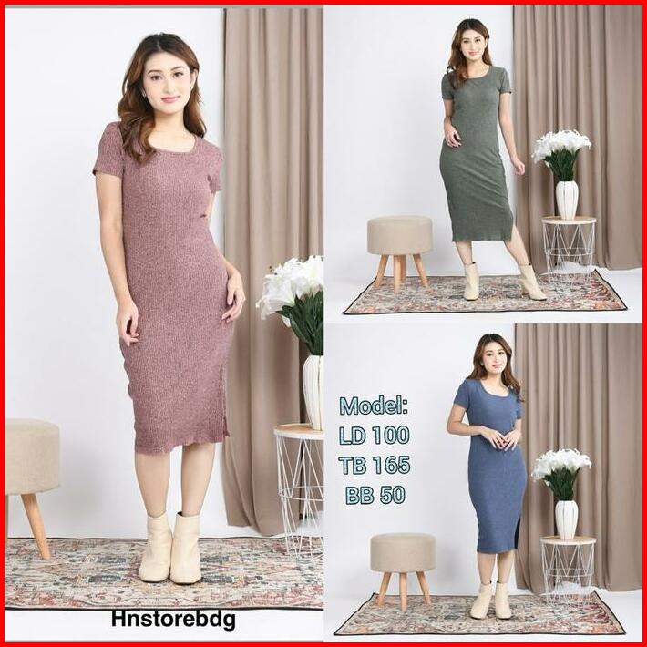 Gaun Dress Korean Style Dress Bahan Knit L Fit Xl Ld90-110 Nyaman Santai Polos Baju Melar Casual Mewah Baju Bridesmaid B