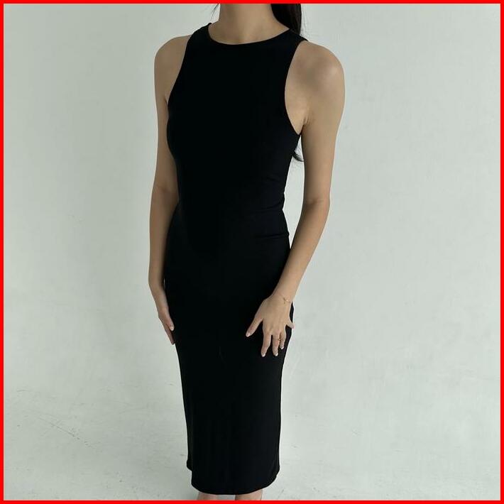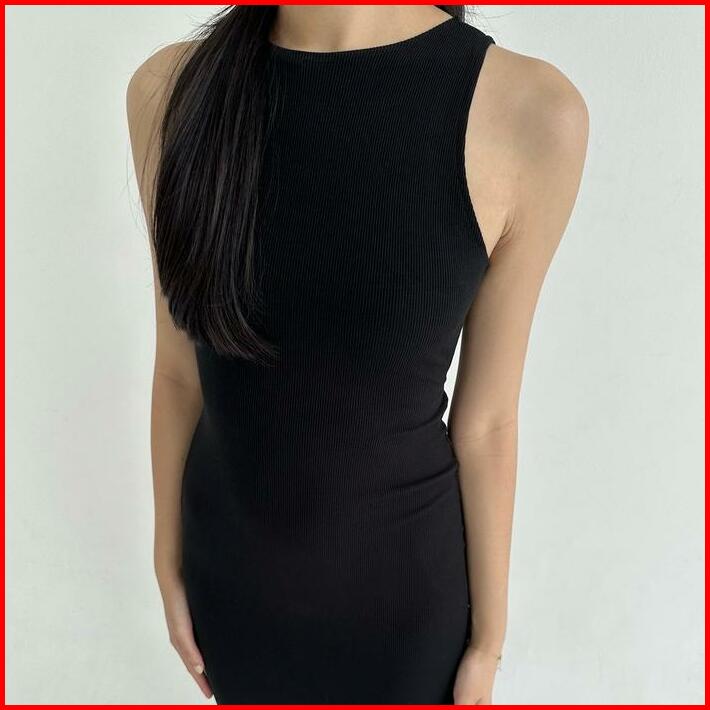 Daphne Dress Dress Panjang Wanita Ribbed Knit Terusan Tanktop Backless Korean Maxi Dress Stretch Tangan Slim-fitting Cas