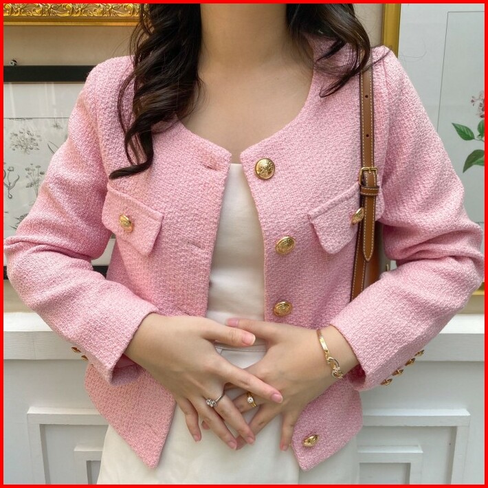 Molla Blazer Tweed Korea Yuri Pink Cardigan Korea