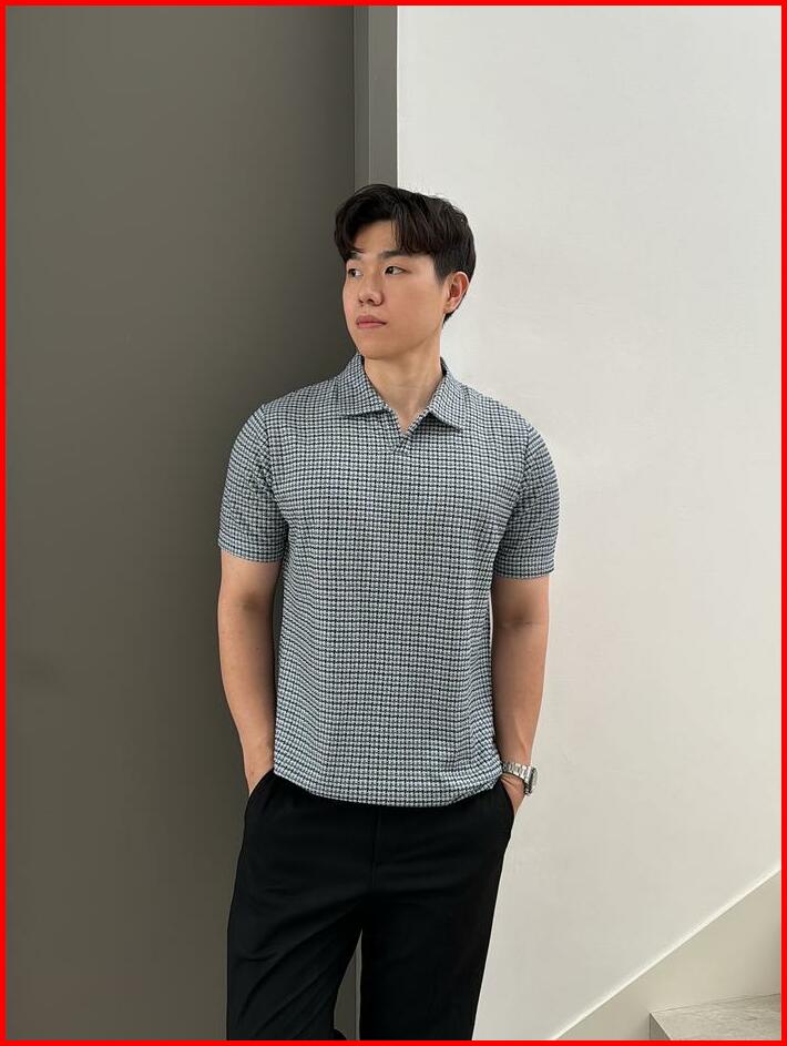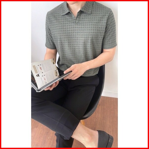 Mt-0164 Polo Pria Knit Tweed Atasan Tangan Pendek