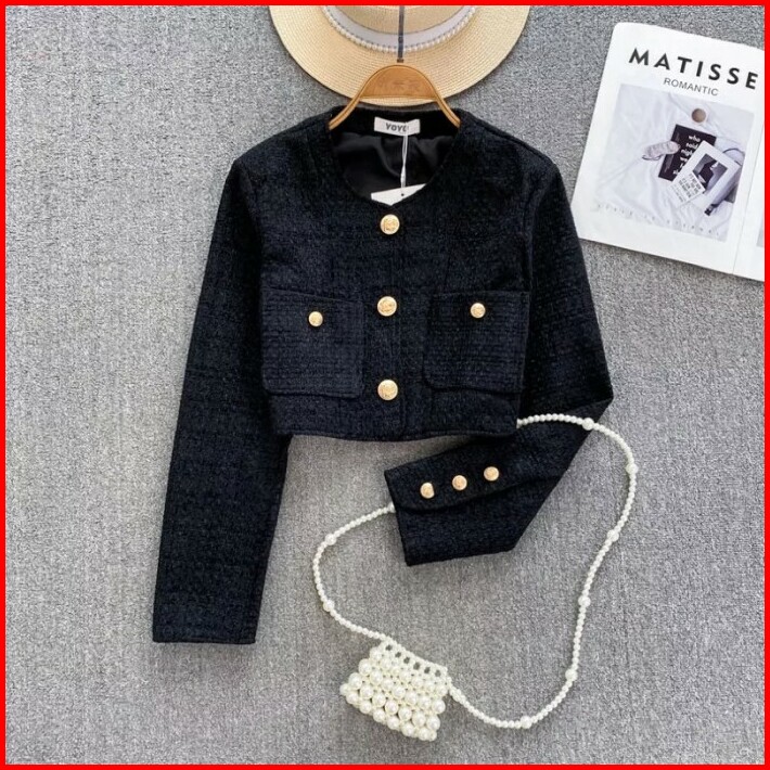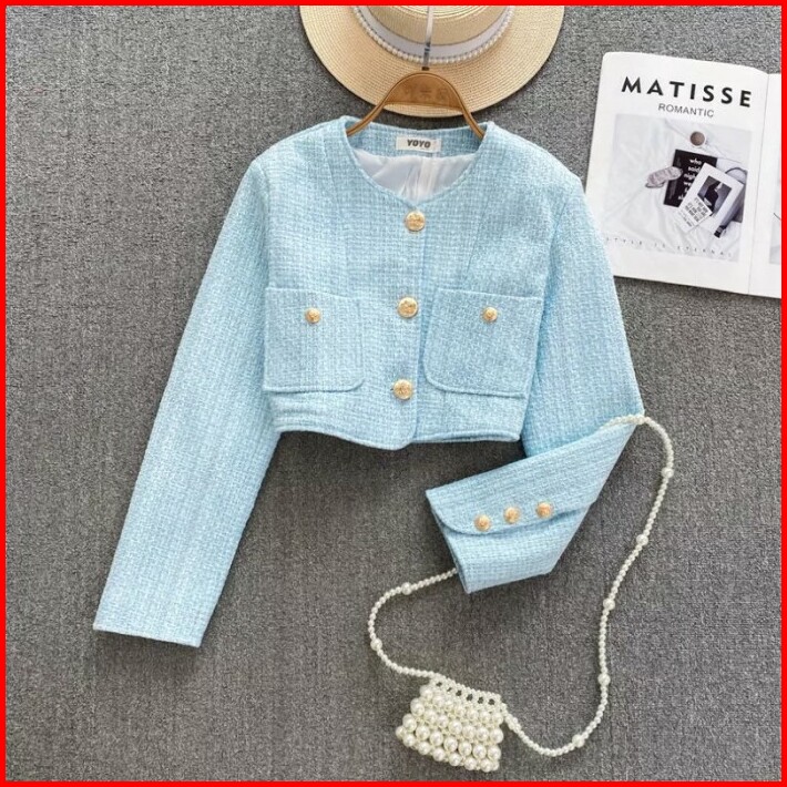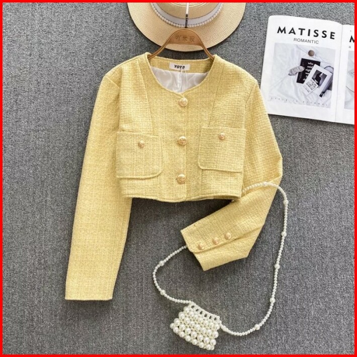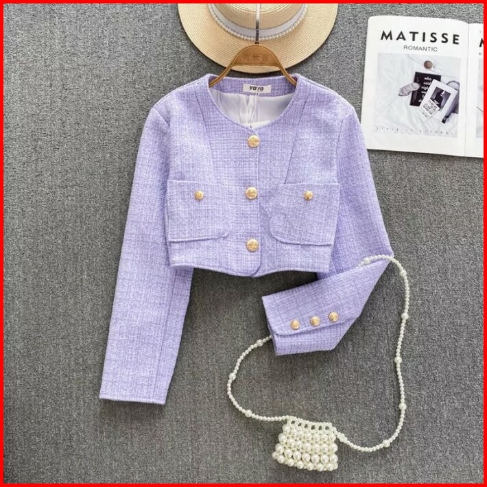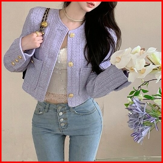 Outer Blazer Crop Tweed Soft Classy Vintage Korean Style Top Xlm