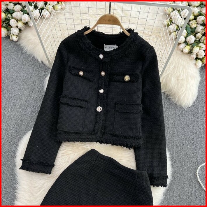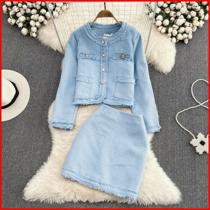 Ready Stock 96 72 Alinor Blue Black Tweed Set Blazer Skirt New Korea Premium Fairlady Id