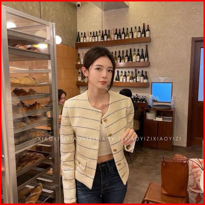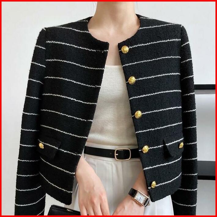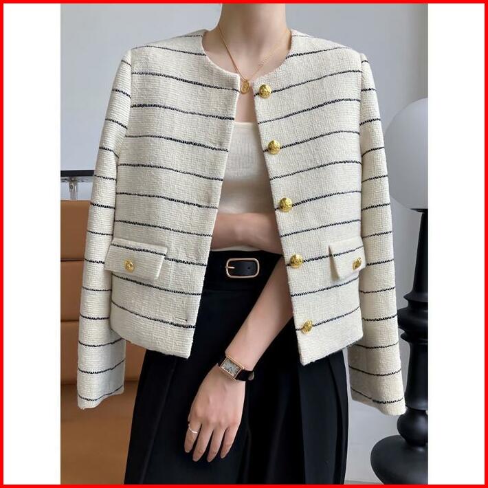 Lenon Tweed Blazer Stripe Premium Outer Wanita Coat Wanita Kekinian Highclass Korean Style