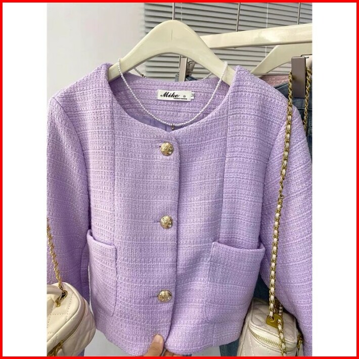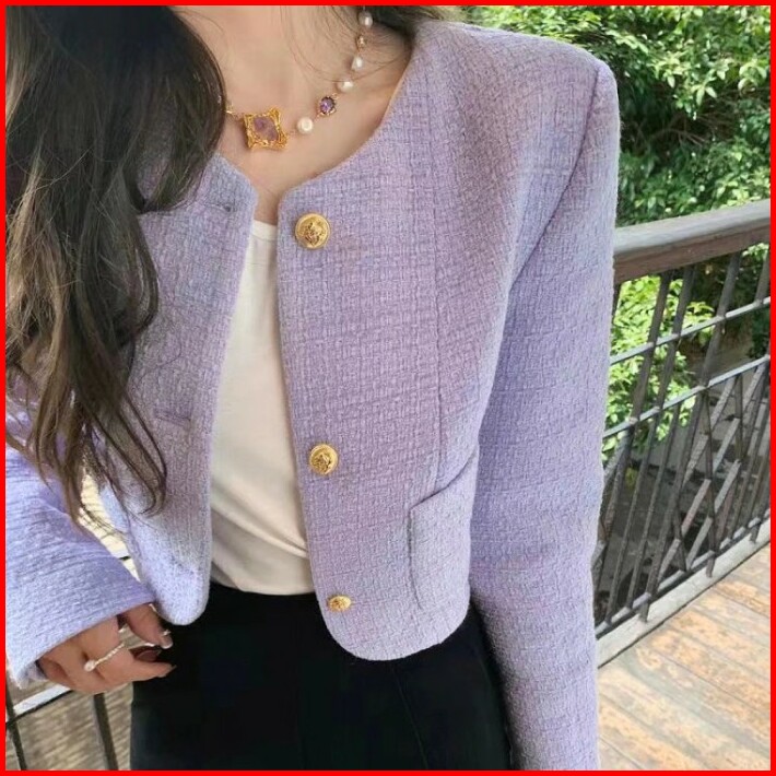Tweed Lilac Blazer Outer Lengan Panjang Korea Style Korean Import Top