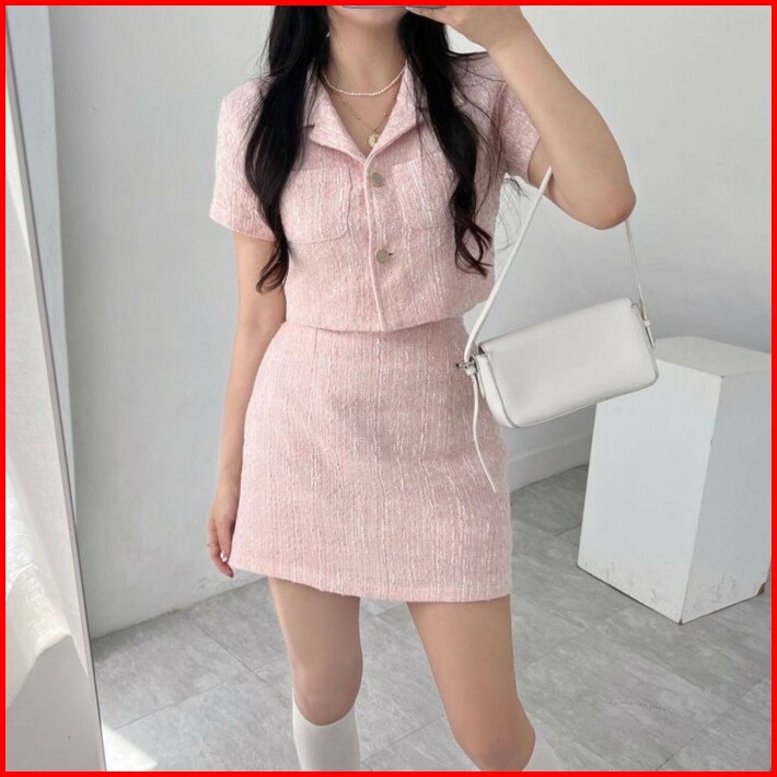 Karoi Set Tweed Korean Chic Minimalis Basic Simple Blazer Skirt Sweet