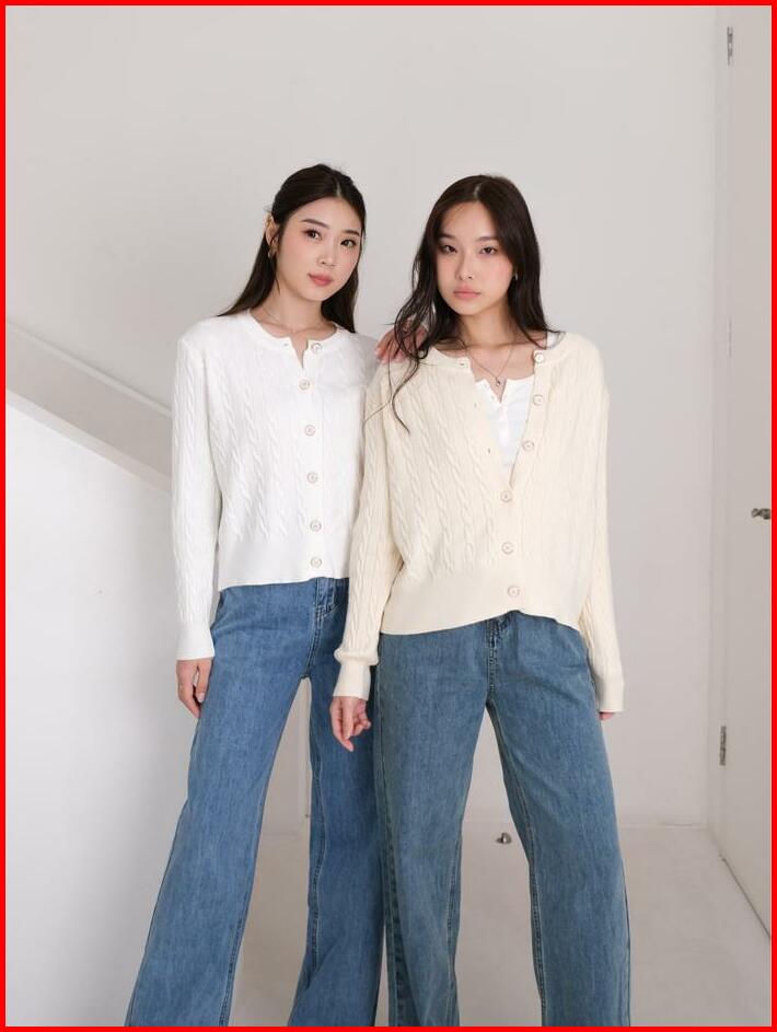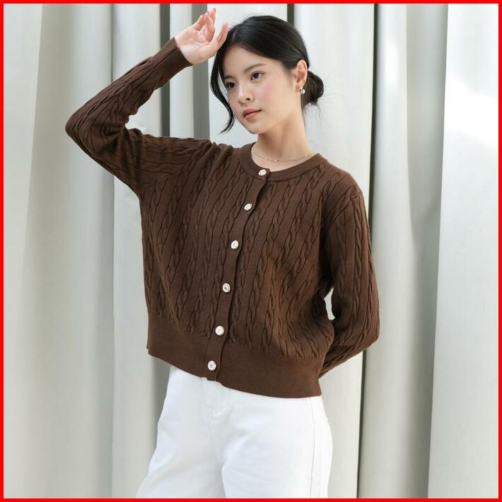 Kiyora Haerin Knit Cardigan Premium Cable Knit Sweater Atasan Rajut Lengan Panjang Outer Korean Style