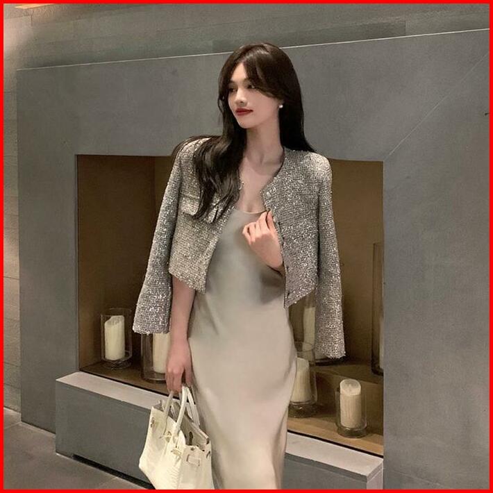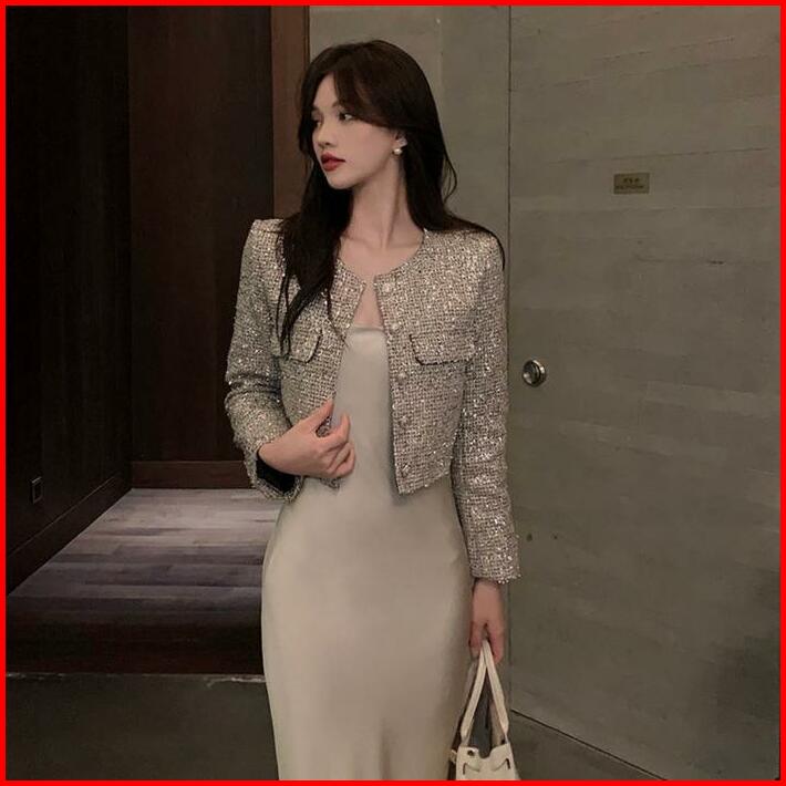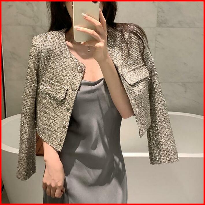 The0ne Crop Blazer Tweed Silver M-l-xl Blazer Tweed Tipis Full Furing