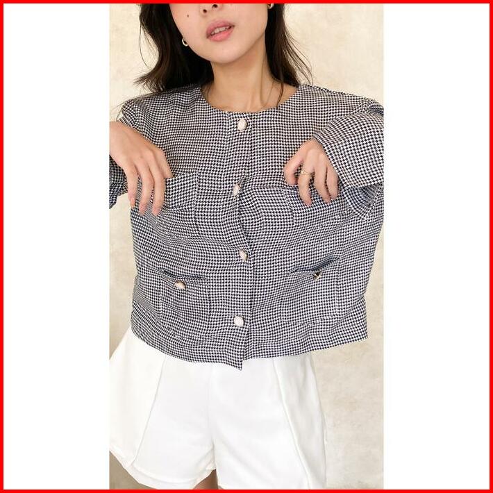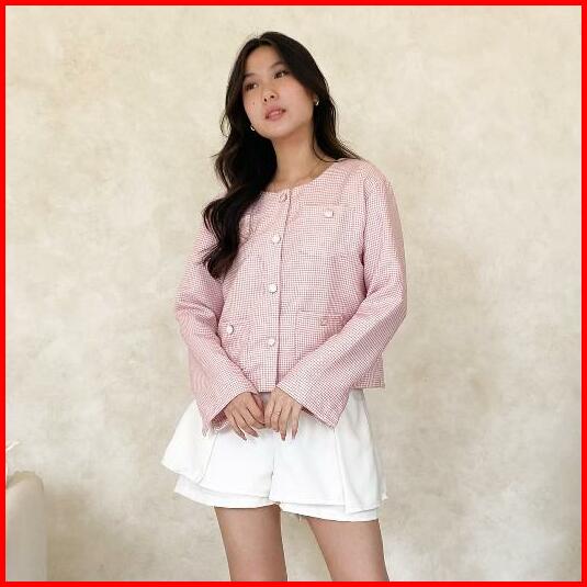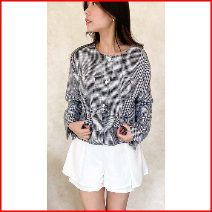 Jiwon Tweed Blazer Outer Wanita Lengan Panjang Luaran Kancing