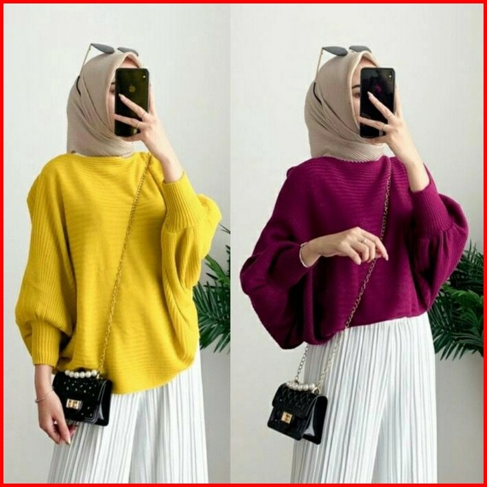 Barly Baju Atasan Sweater Rajut Wanita Korea Jumbo Muslim Polos Murah