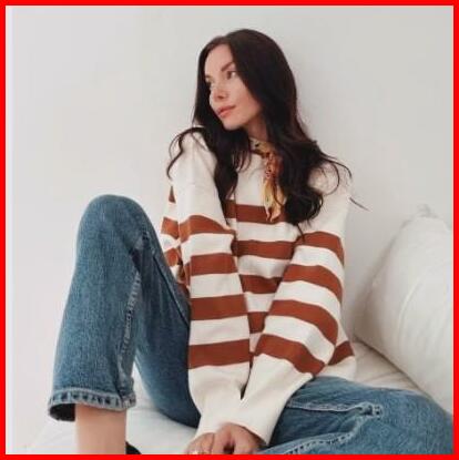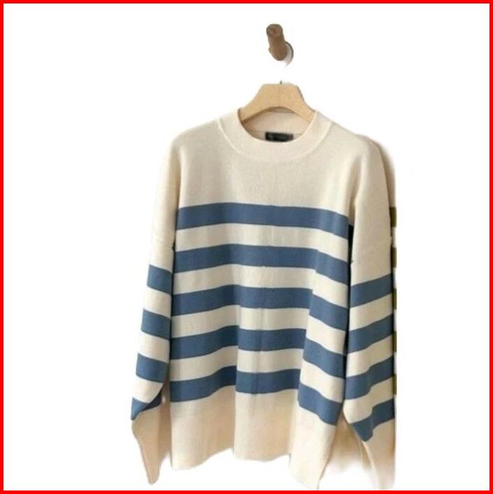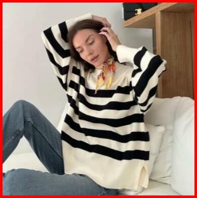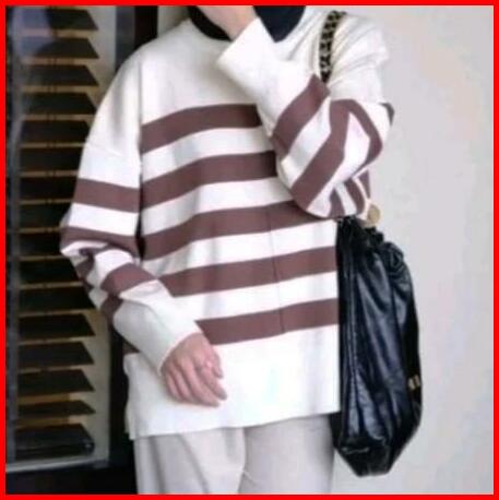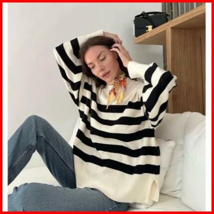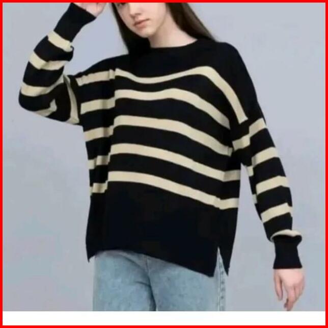 Sweater Rajut Oversize Stripe-diora Premium Knitwear Atasan Wanita Motif Kerah Bulat Baju Fit