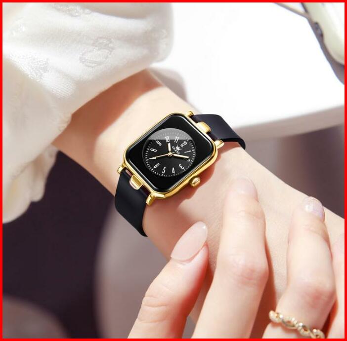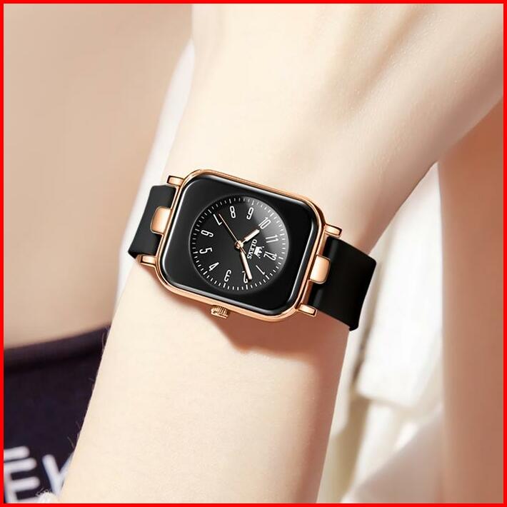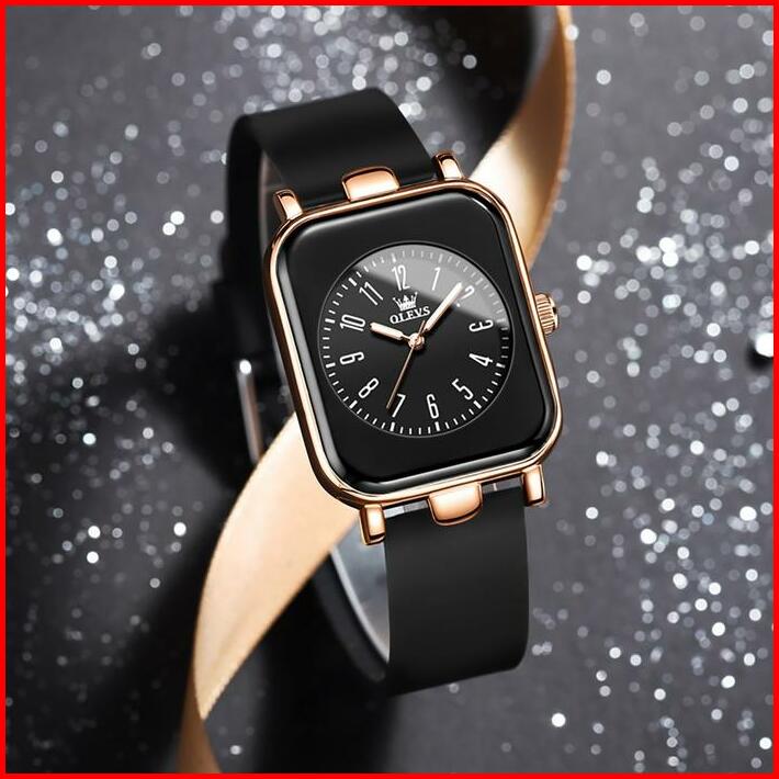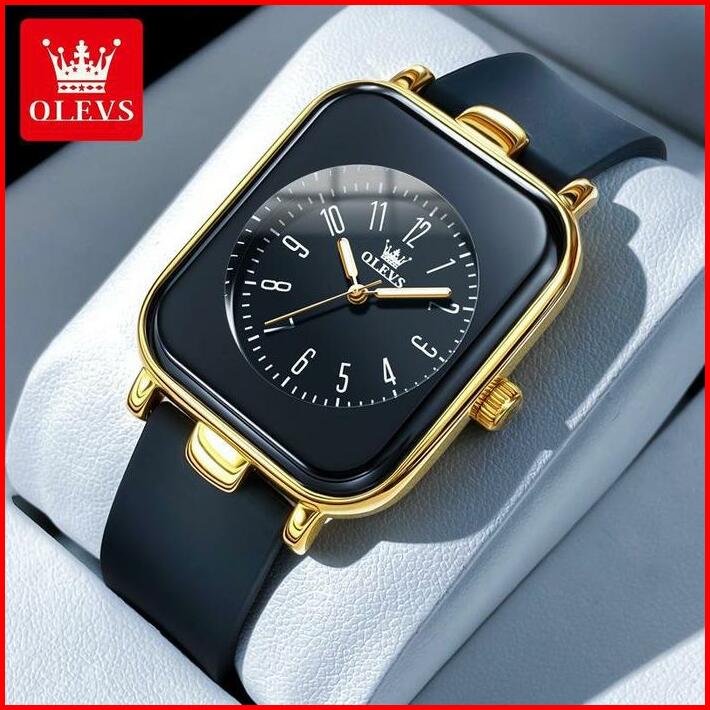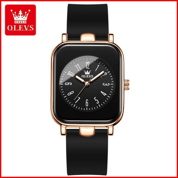 Olevs Jam Tangan Wanita Fashion Anti Air Original Tali Silikon Jam Tangan Wanita Kuarsa Bercahaya Dial Persegi Sederhana