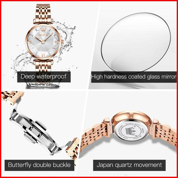 Olevs Jam Tangan Wanita Anti Air Kecil Original Cewek Rantai Terbaru 2024 Korea Stainless Steel Watch Women
