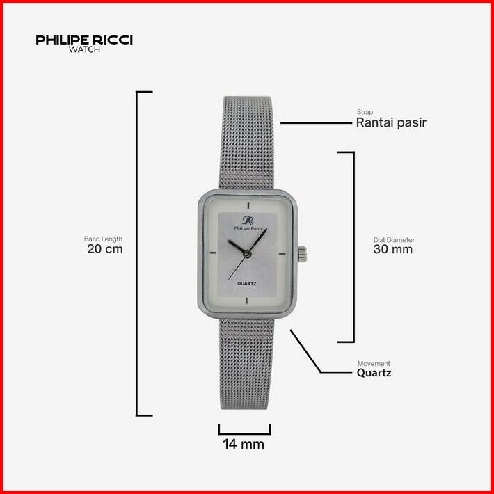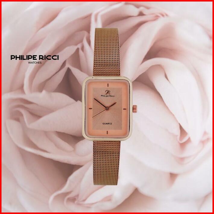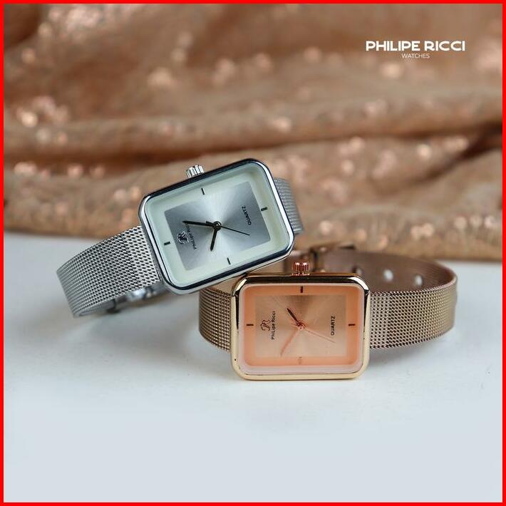 Philipe Ricci Jam Tangan Wanita Kecil Analog Strap Tali Rantai Pasir Diameter Kotak Desain Mewah Model Elegan Mini Terba