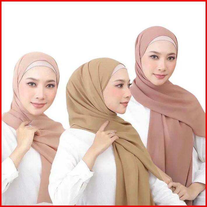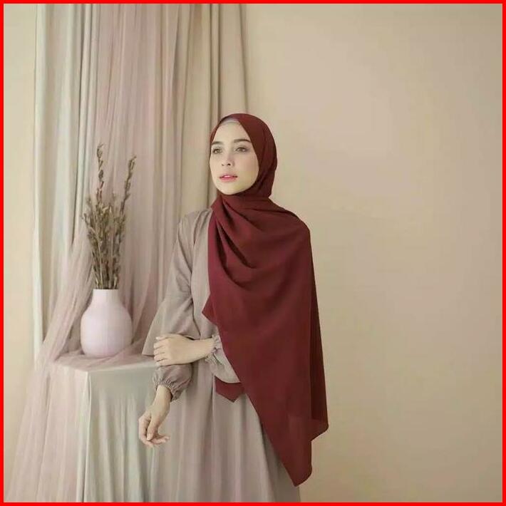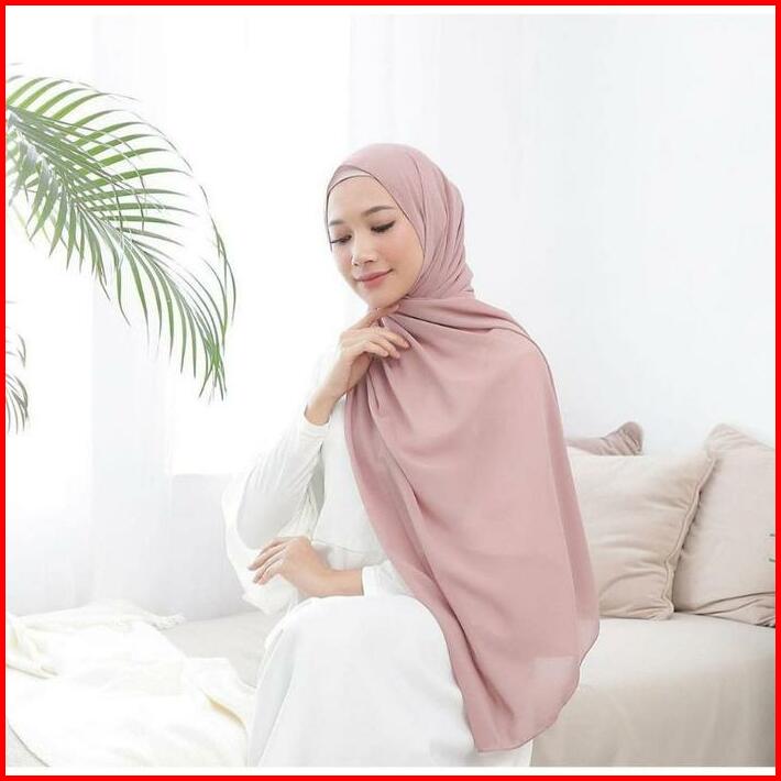 Hijab Pashmina Ceruty Babydoll Lozy Polos Jahit Tepi Muslim Kerudung Syari Dewasa